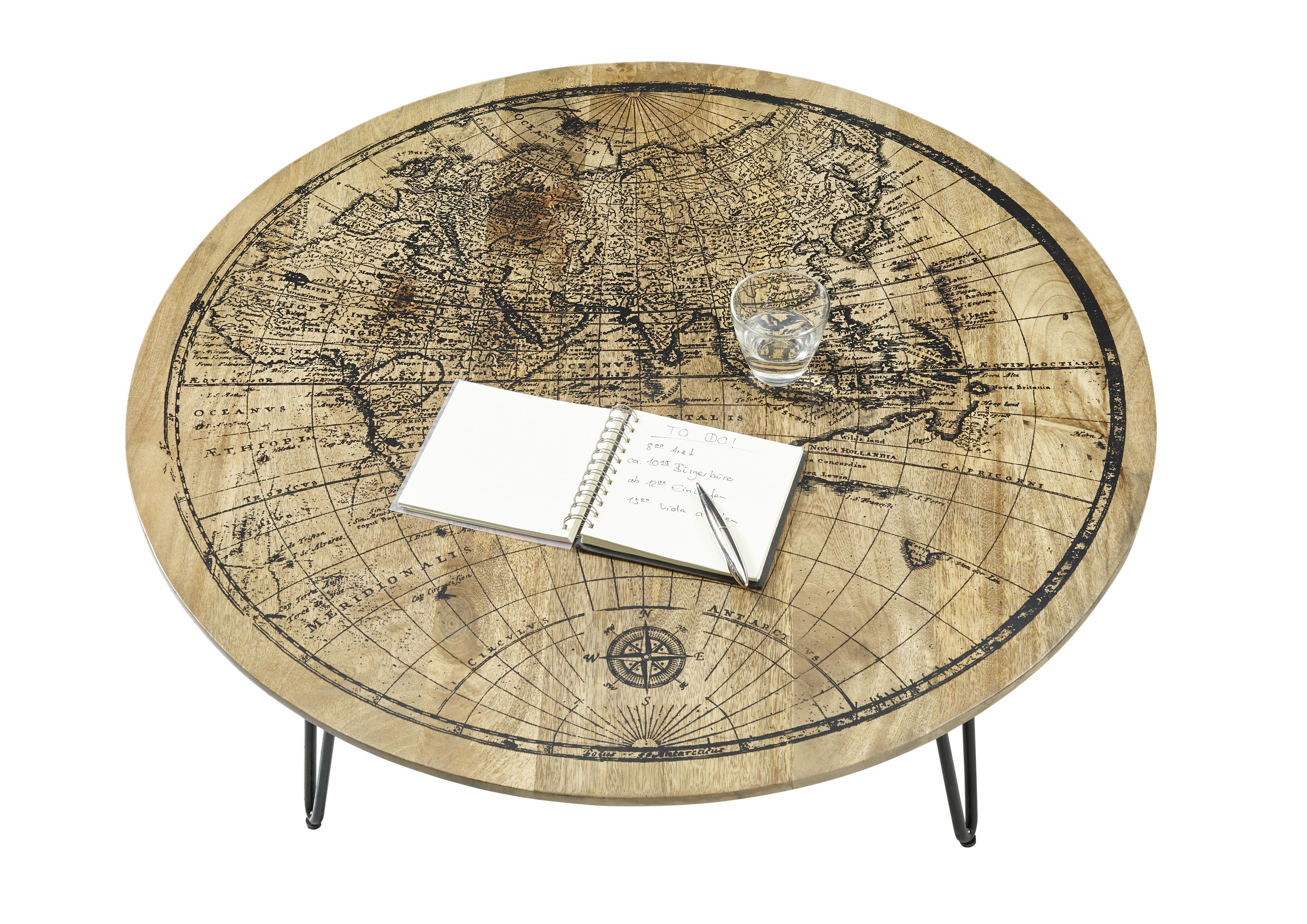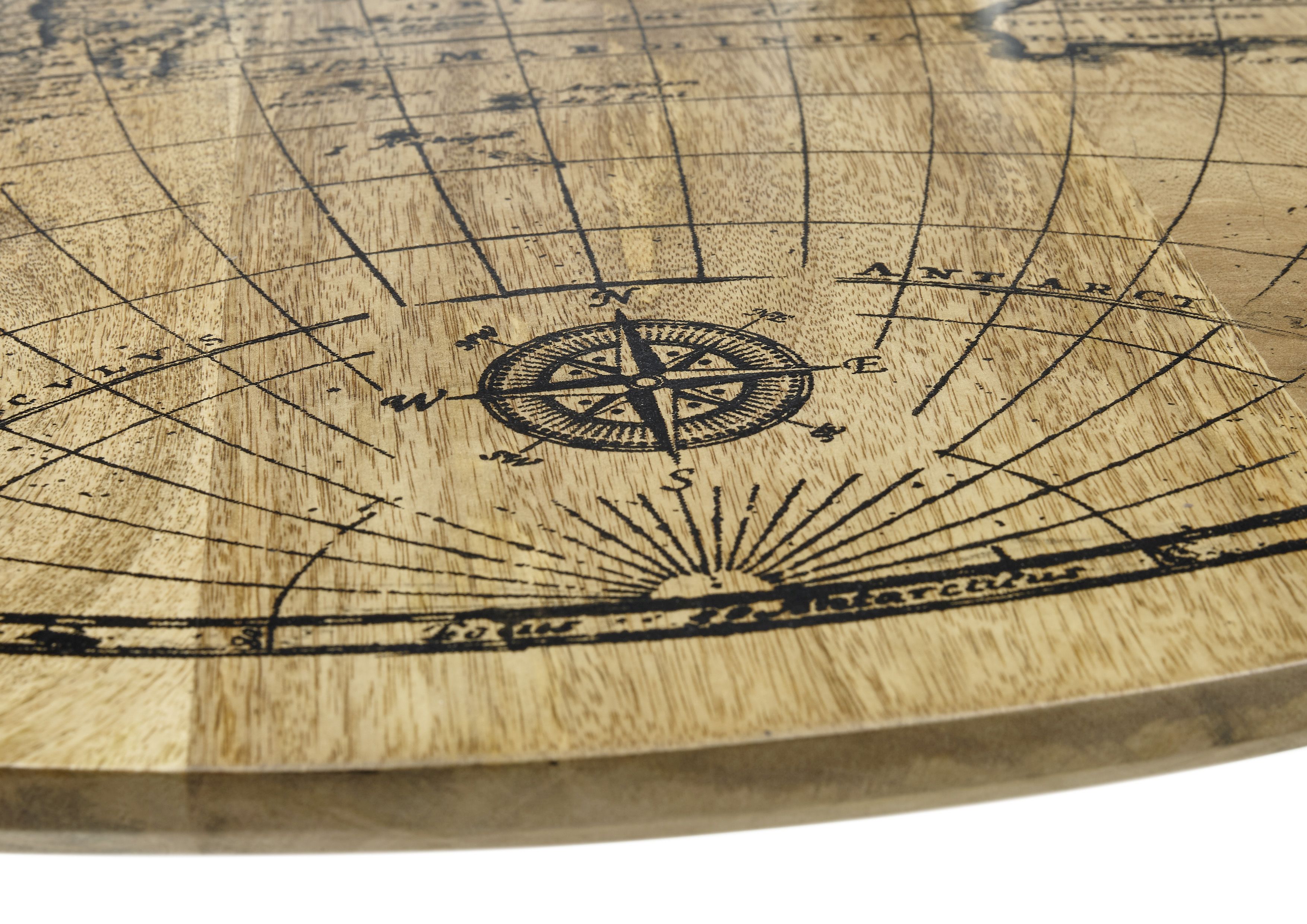 Tischplatte: Mangoholz massiv (Serbien) mit Aufdruck Weltkarte