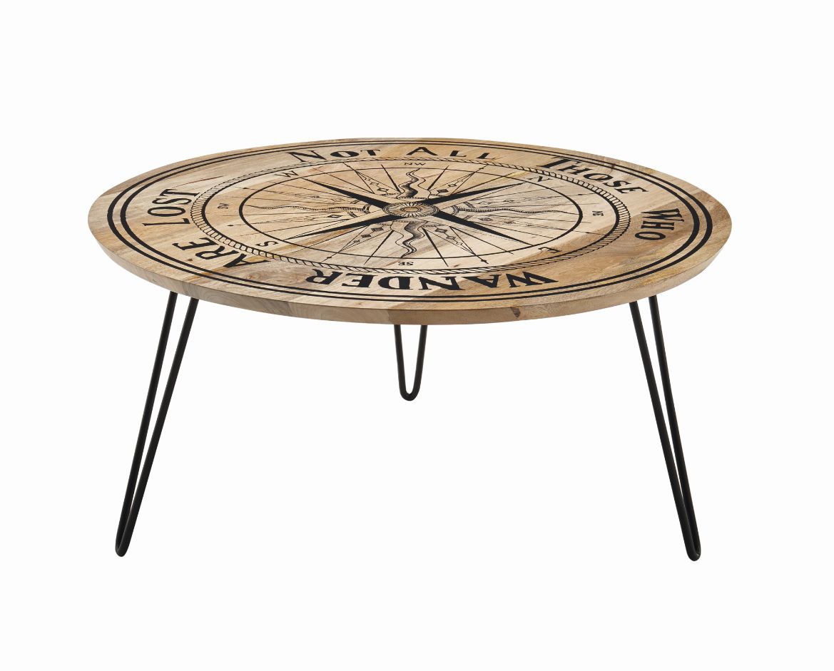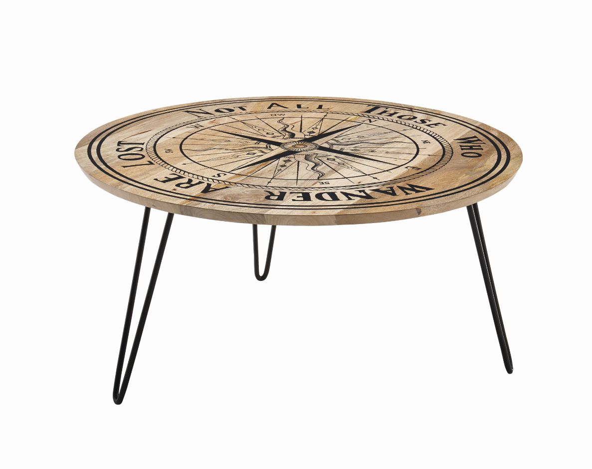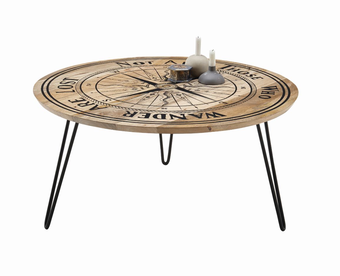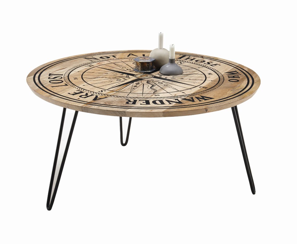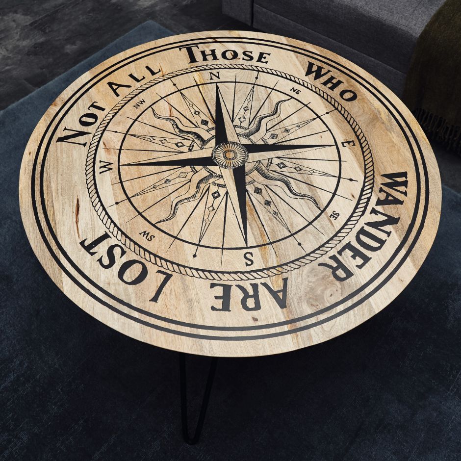 Tischplatte: Mango massiv (Indien) mit Kompass-Motiv-Druck