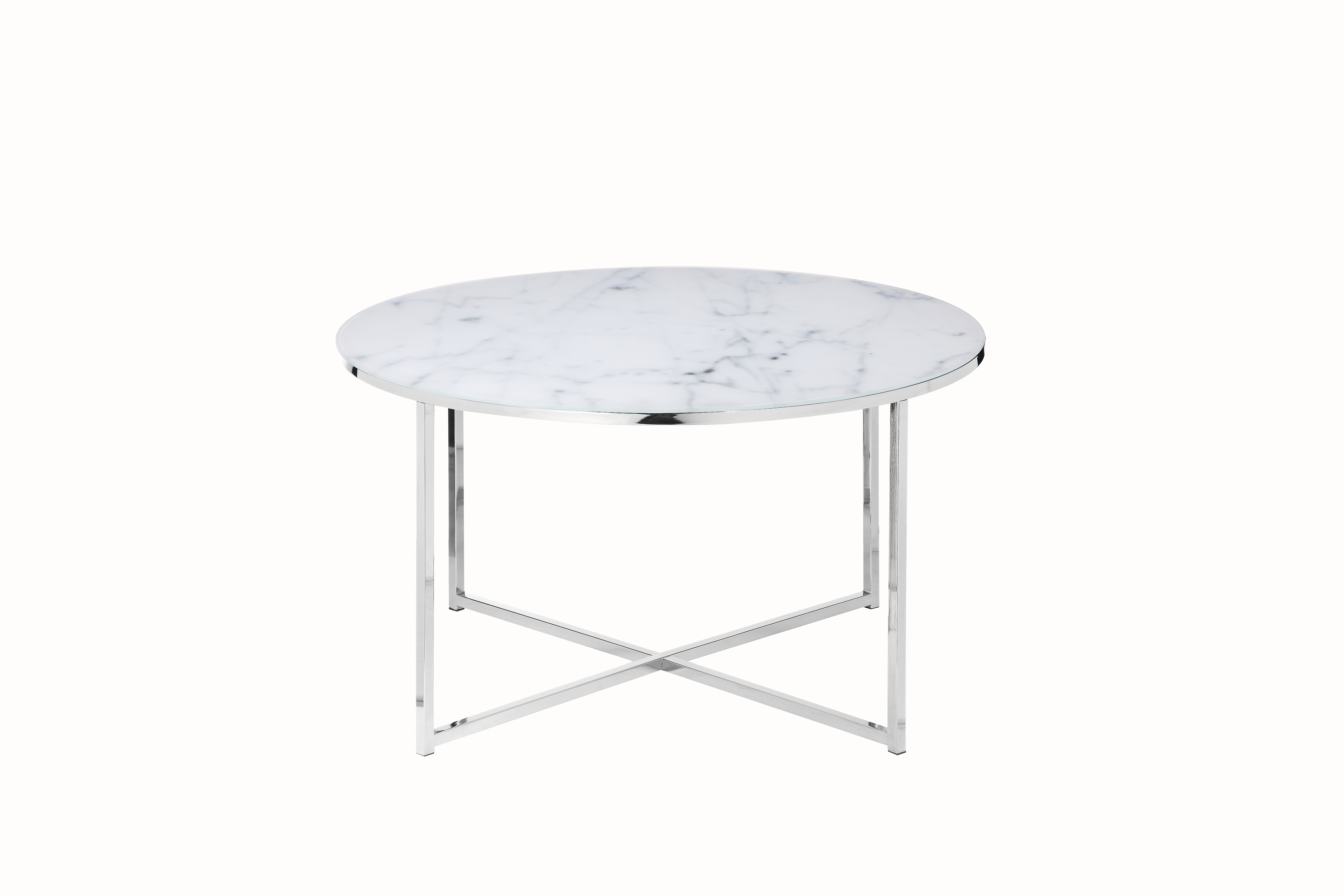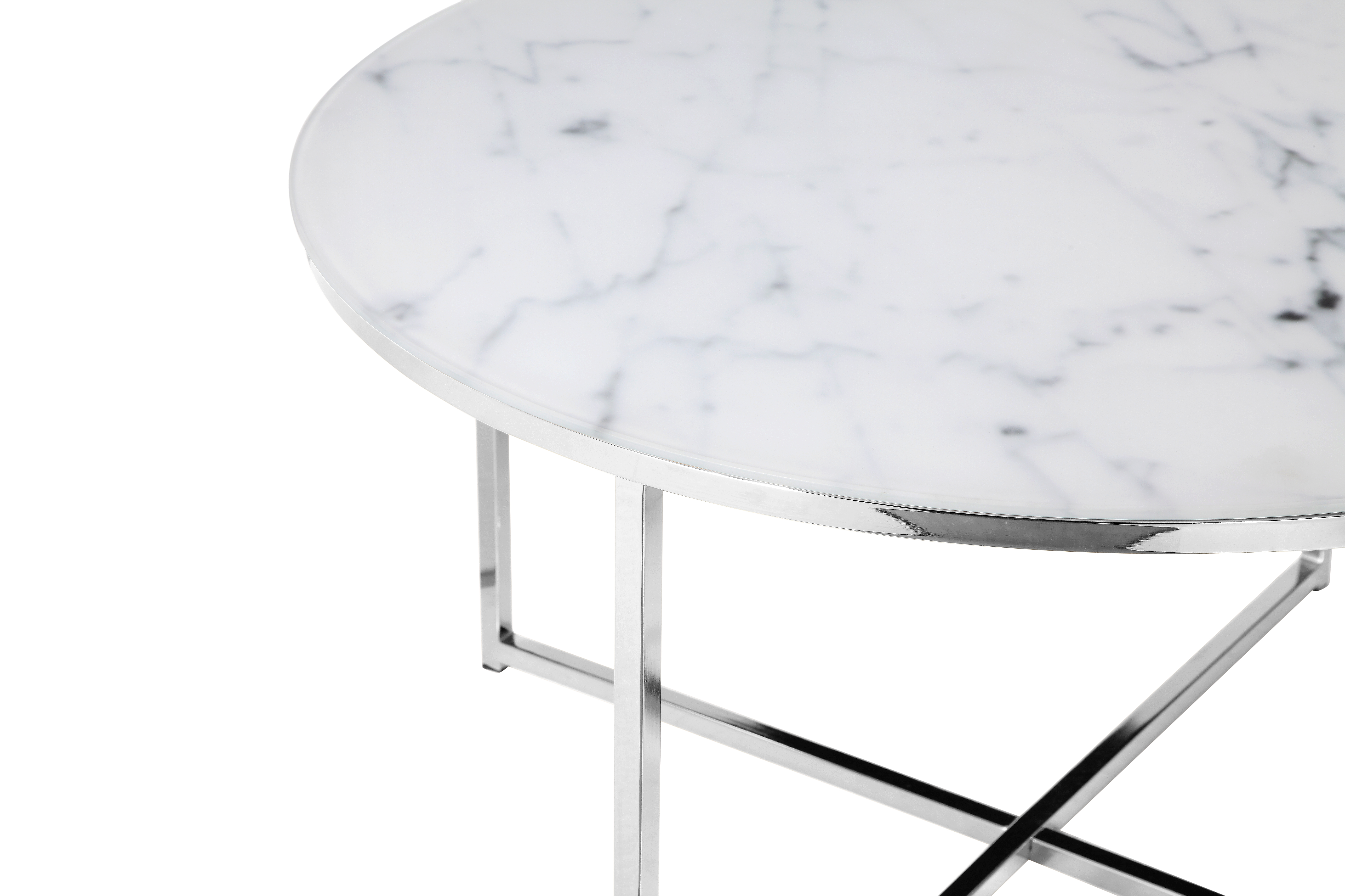 Tischplatte: Glasplatte foliert in Marmoroptik in weiß