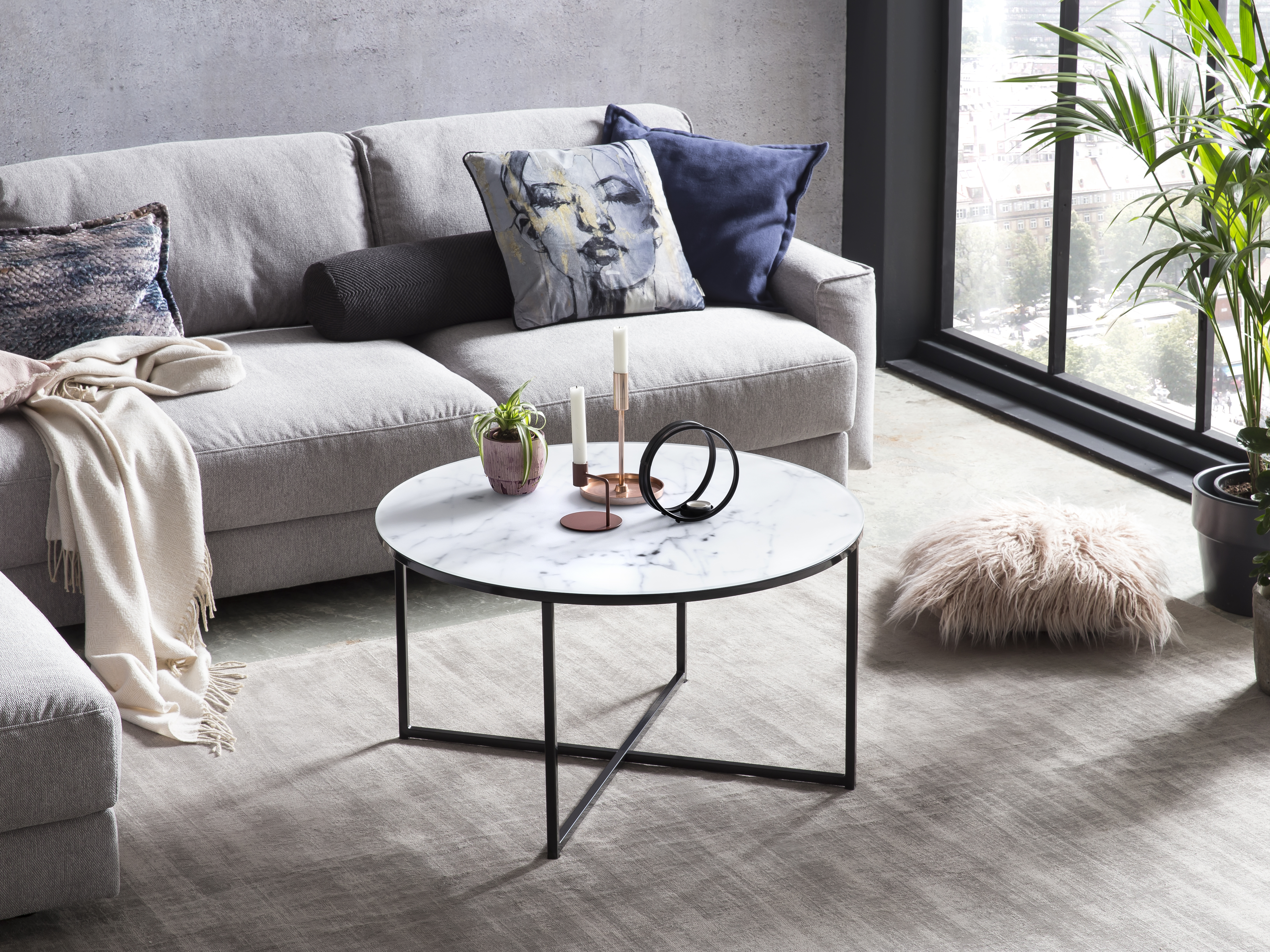 Tischplatte: Glasplatte foliert in Marmoroptik in weiß