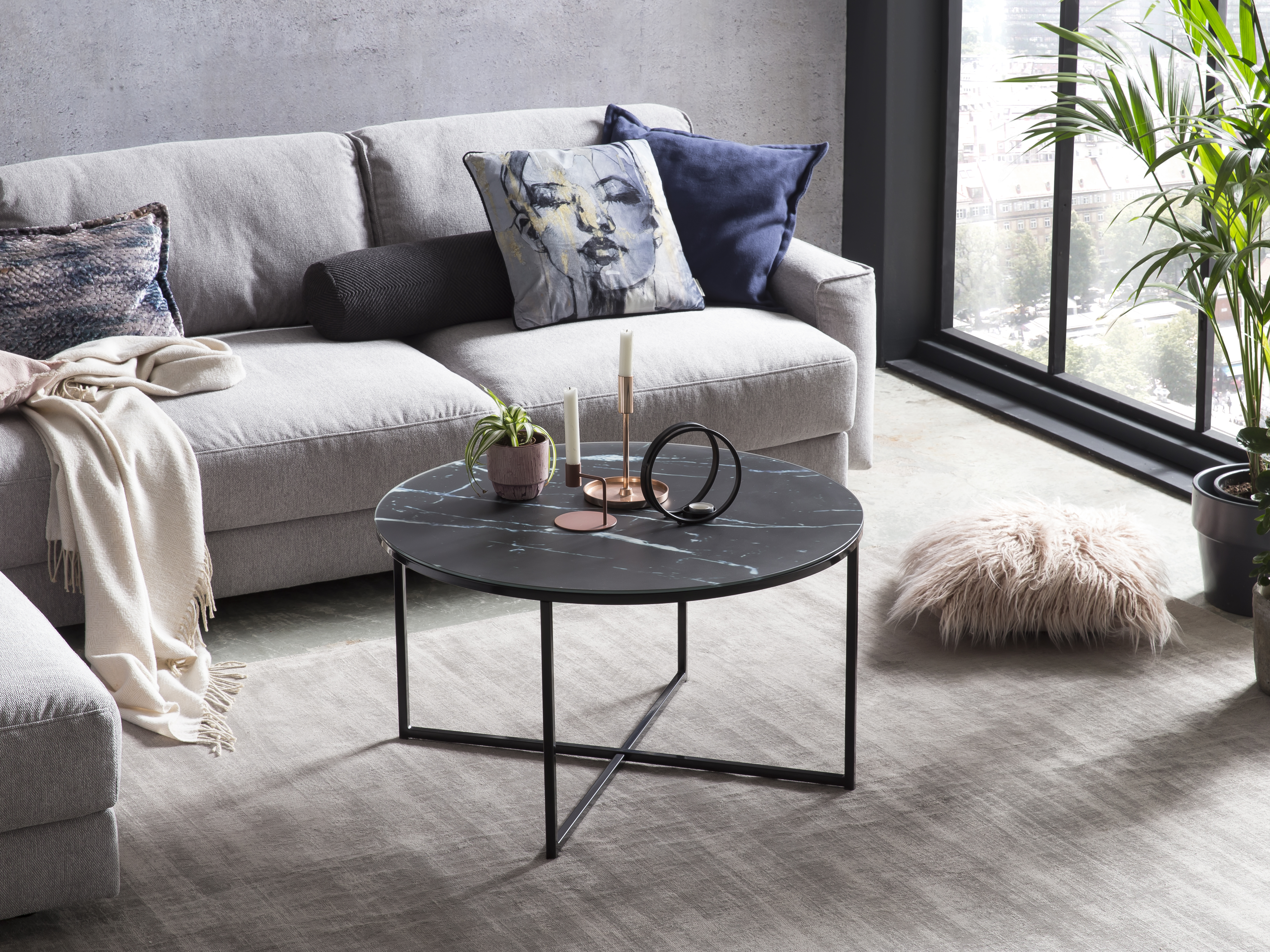 Tischplatte: Glasplatte foliert in Marmoroptik in schwarz