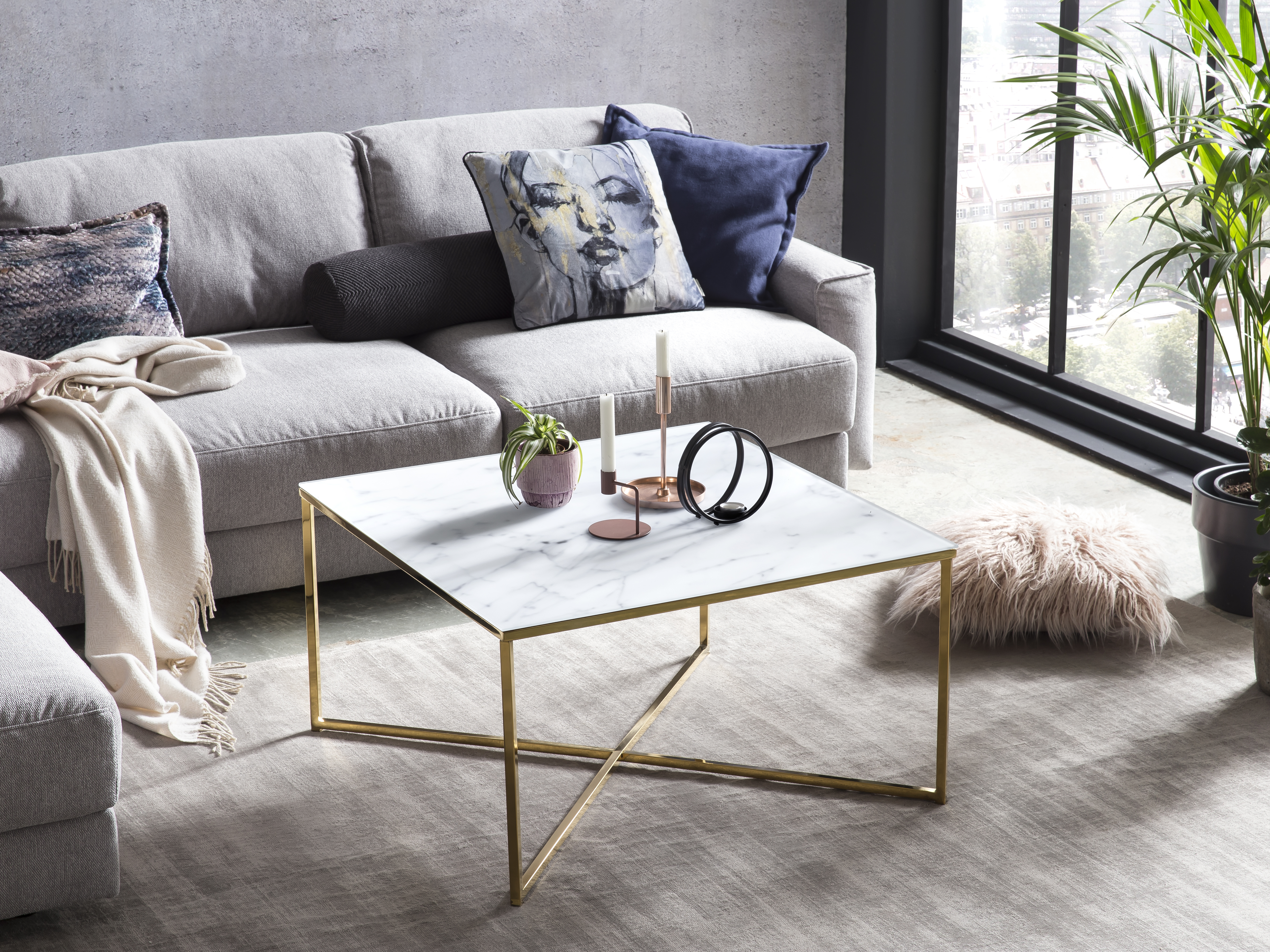 Tischplatte: Glasplatte foliert in Marmoroptik in weiß
