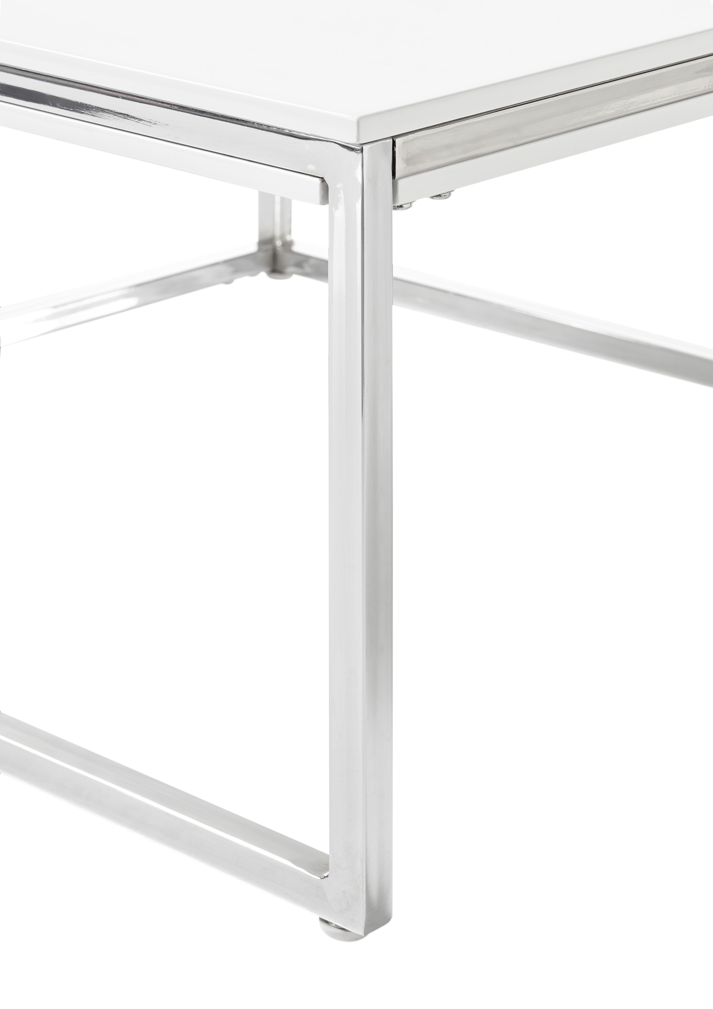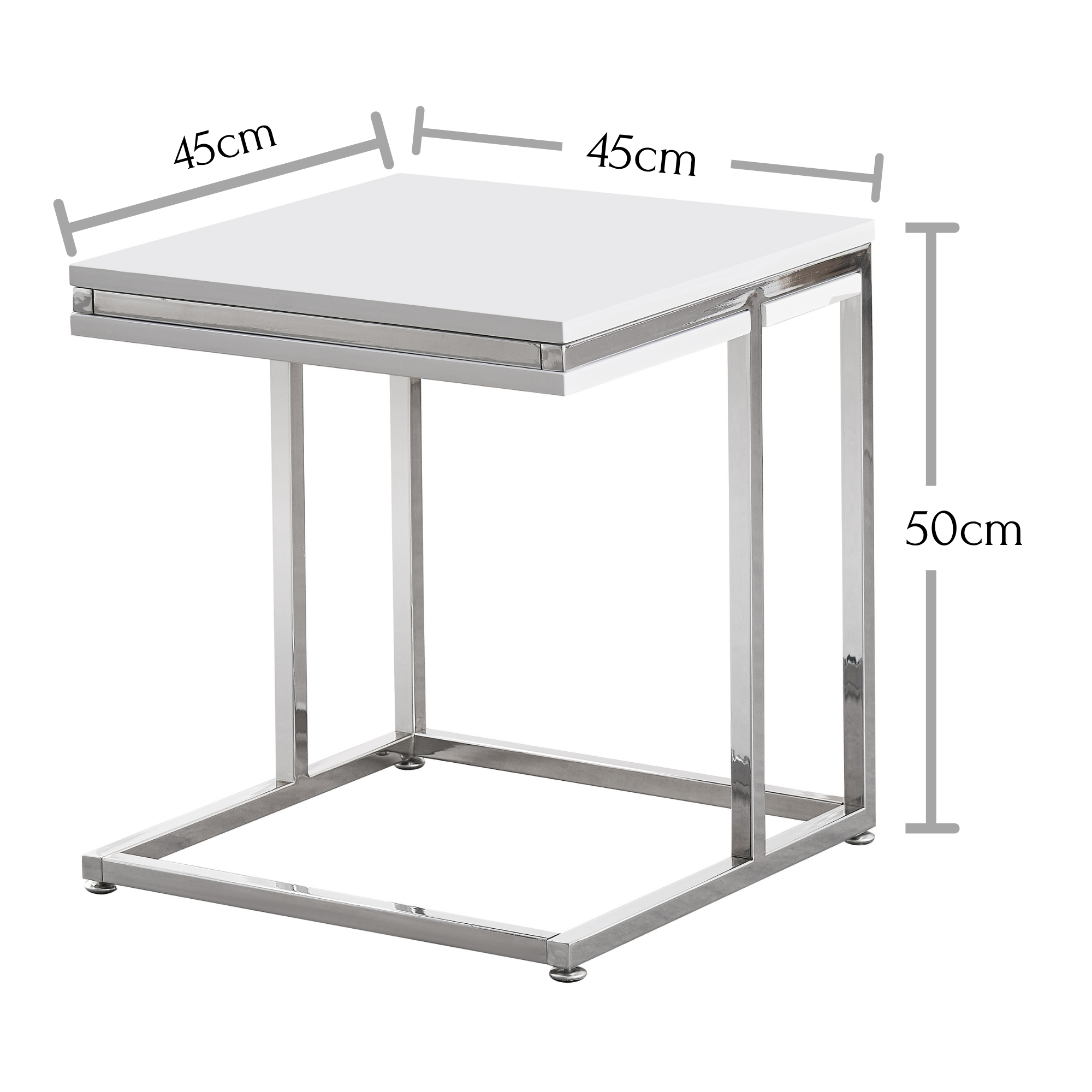 Mit kompakten Maßen von bietet er ausreichend Fläche für Deko, Snacks oder Fernbedienungen und schafft eine helle, freundliche Atmosphäre im Wohnzimmer. Die hochglänzende Oberfläche reflektiert Licht und setzt stilvolle Akzente, während das robuste Gestell für Standfestigkeit sorgt.