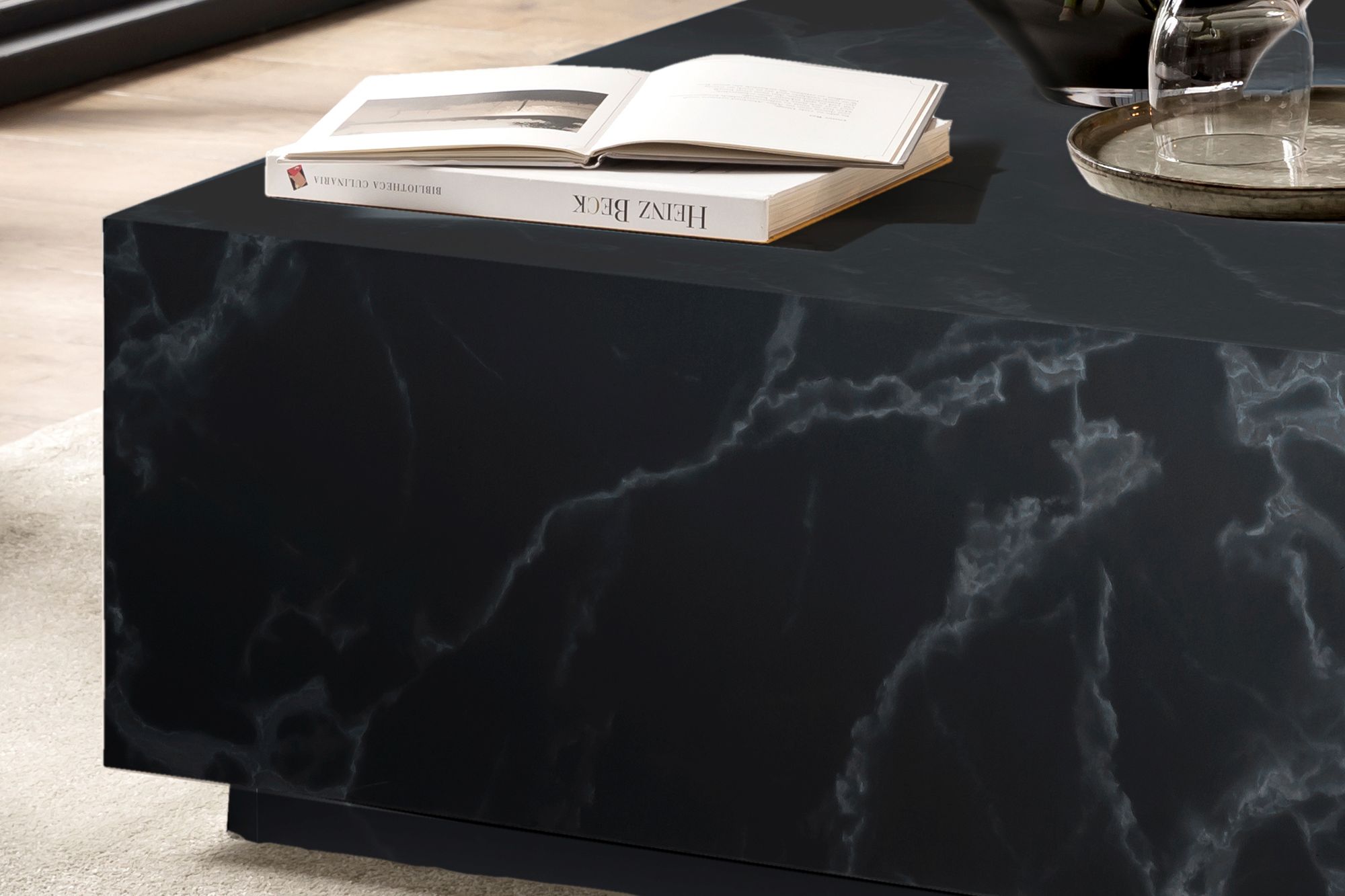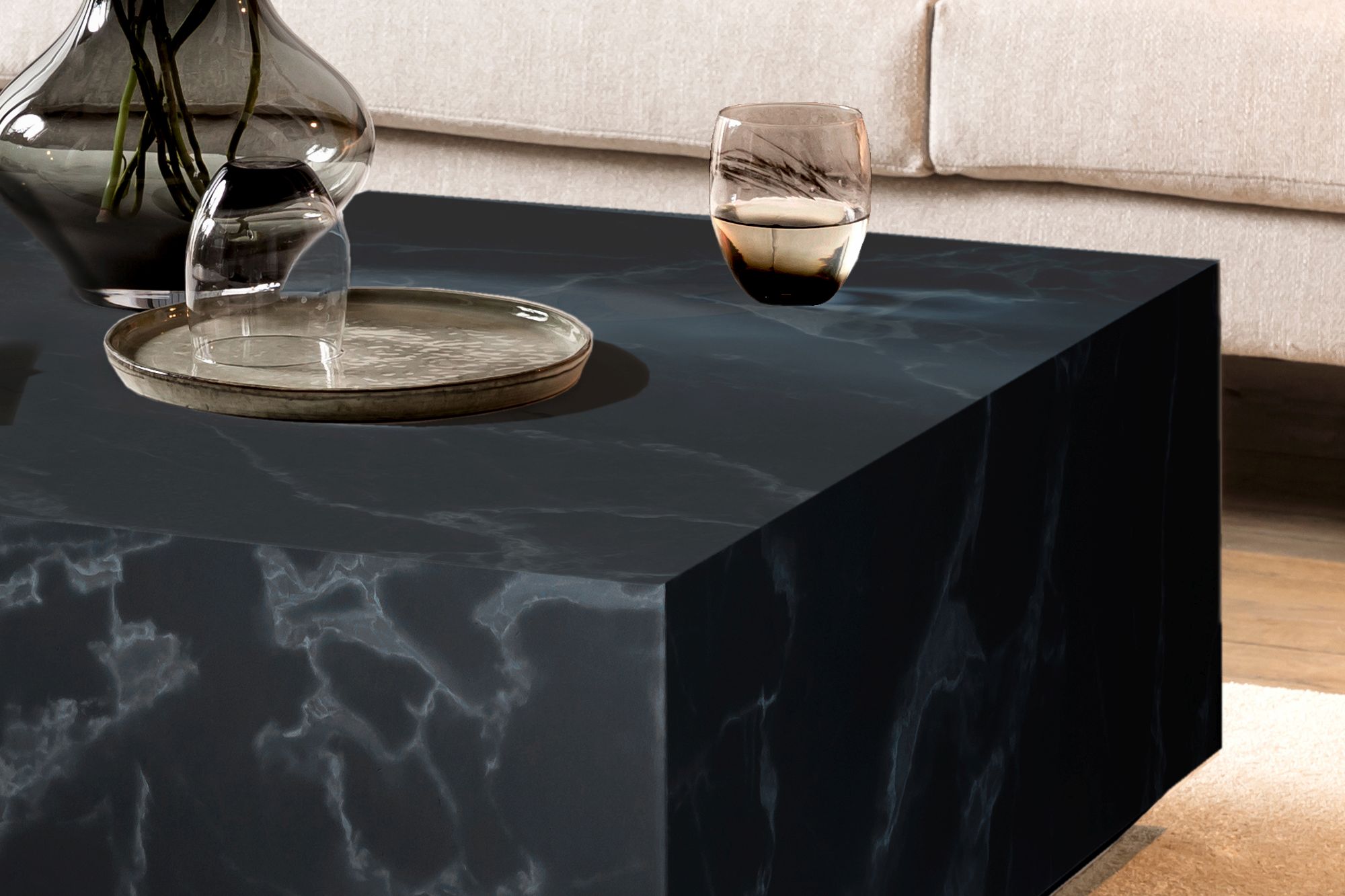 Dieser schicke Couchtisch lässt Ihr Wohnzimmer gleich viel edler wirken. Die schlichte Würfelform mit viel Fläche bringt die tolle schwarzer Marmoroptik besonders zur Geltung. Die niedrige Höhe zaubert einen modernen Loungecharakter in Ihr Zuhause.
