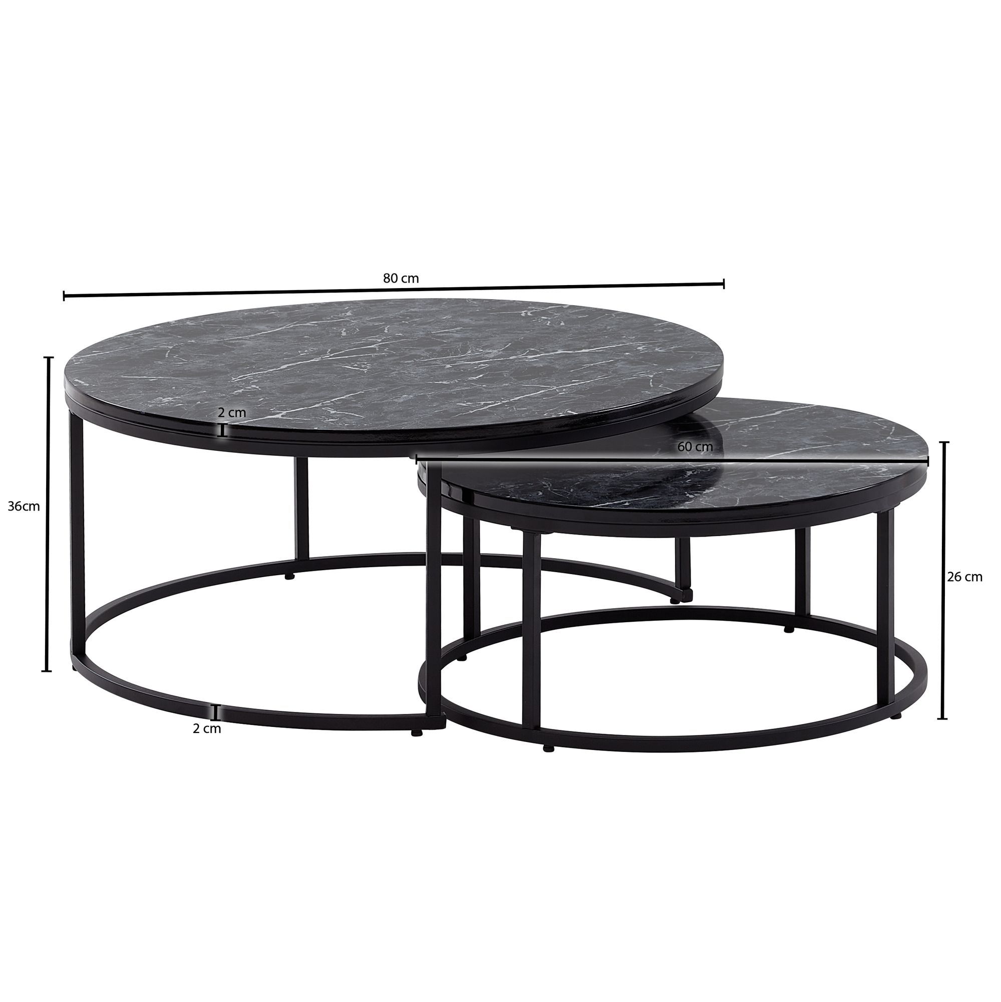 ABMESSUNGEN ✔ Großer Tisch (BxTxH): 80 x 80 x 36 cm // Kleiner Tisch (BxHxT): 60 x 60 x 26 cm // Tischplattenstärke: 2 cm // Weitere Abmessungen finden Sie im Maßbild.