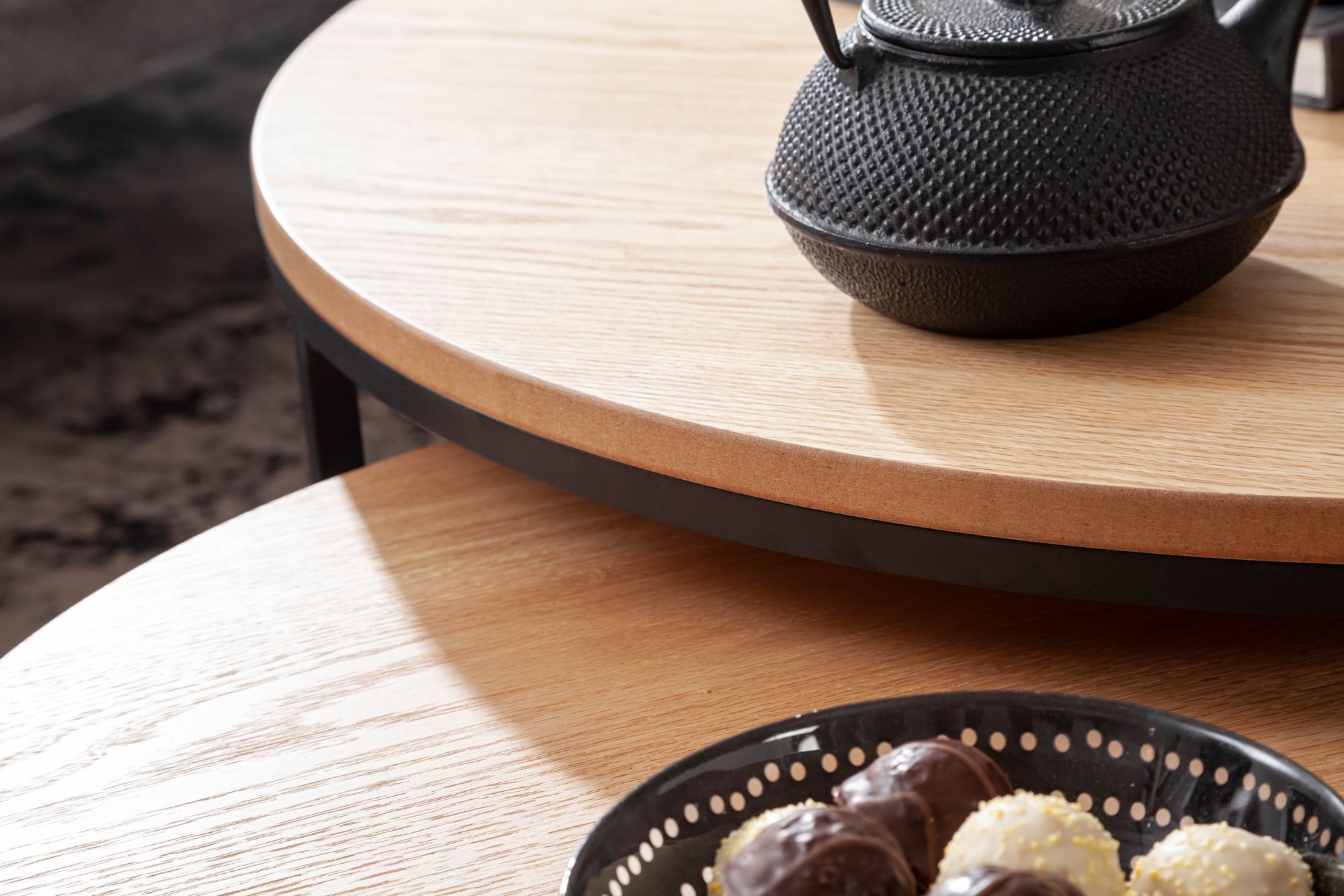 MATERIAL ✔ Tischplatten: MDF mit Furnier aus echtem Eichenholz // Gestelle: pulverbeschichteter Stahl.