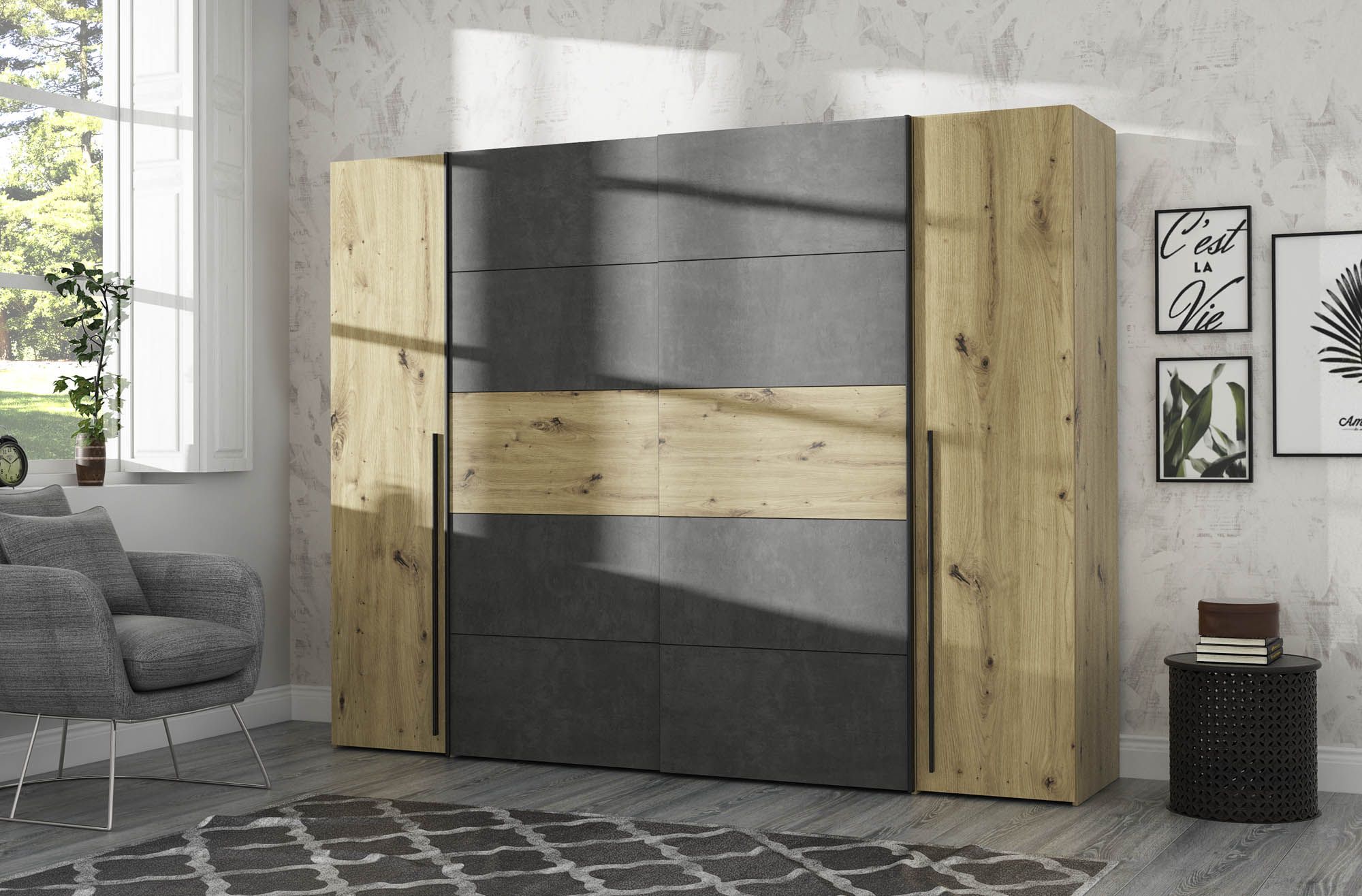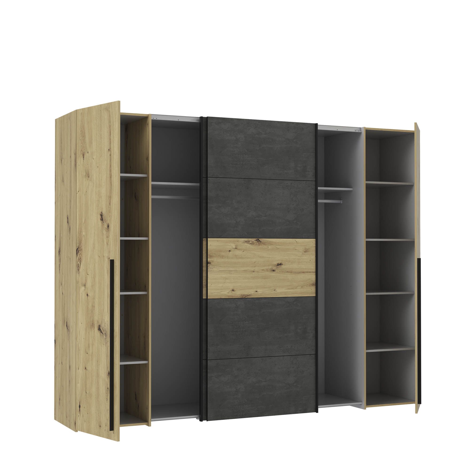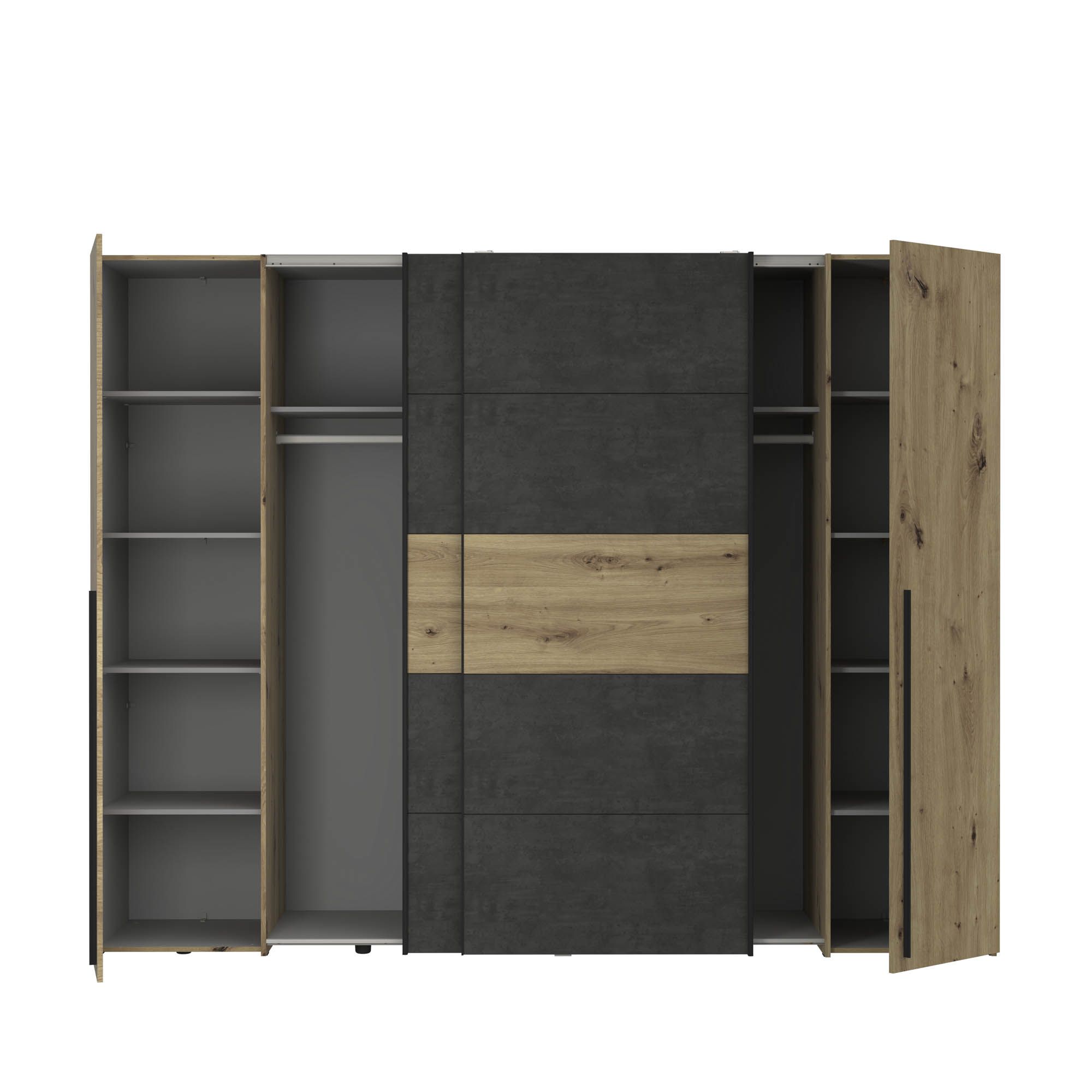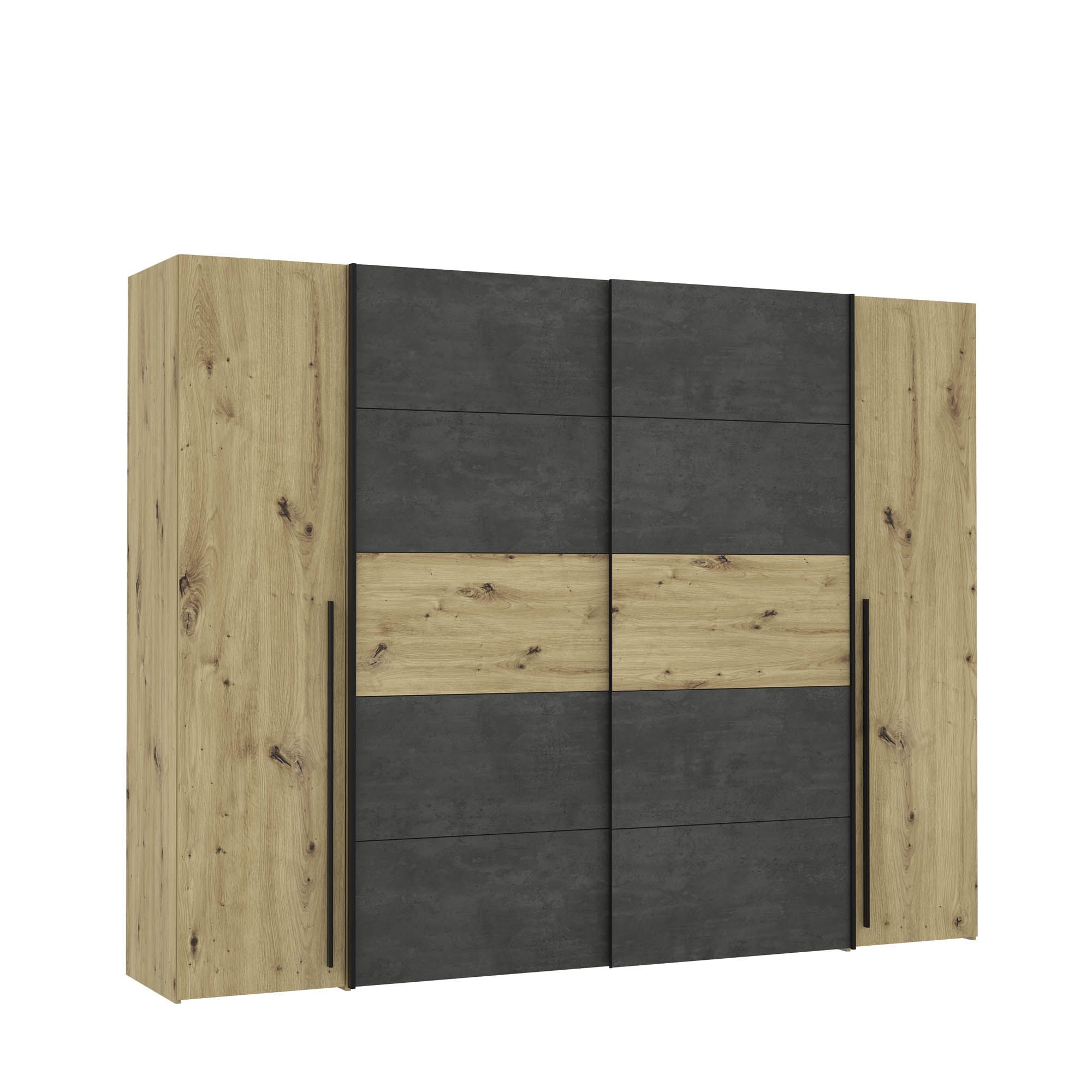 Front: Artisan Eiche Holznachbildung kombiniert mit Betonoptik dunkelgrau