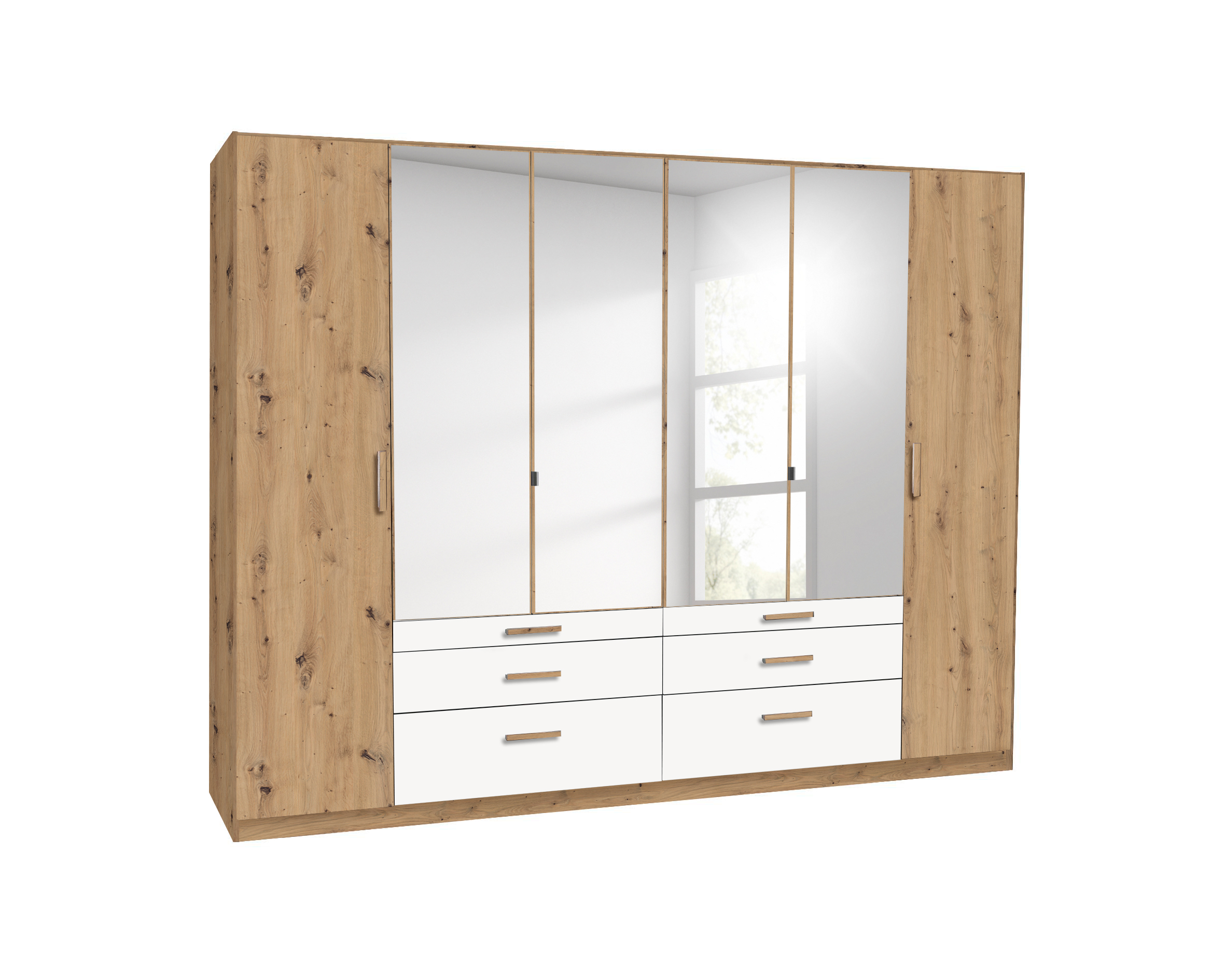 Front und Korpus: Artisan Eiche Holznachbildung kombiniert mit Absetzungen in alpinweiß