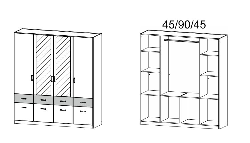 | Ausstattung Schränke: | Schublade(n), Spiegel | ||
