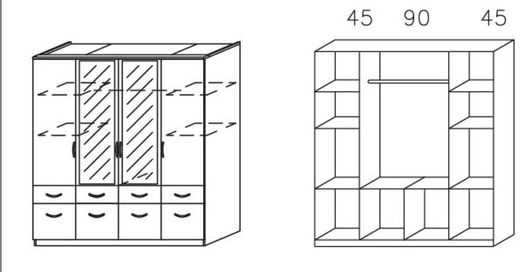 | Ausstattung Schränke: | Schublade(n), Spiegel | ||