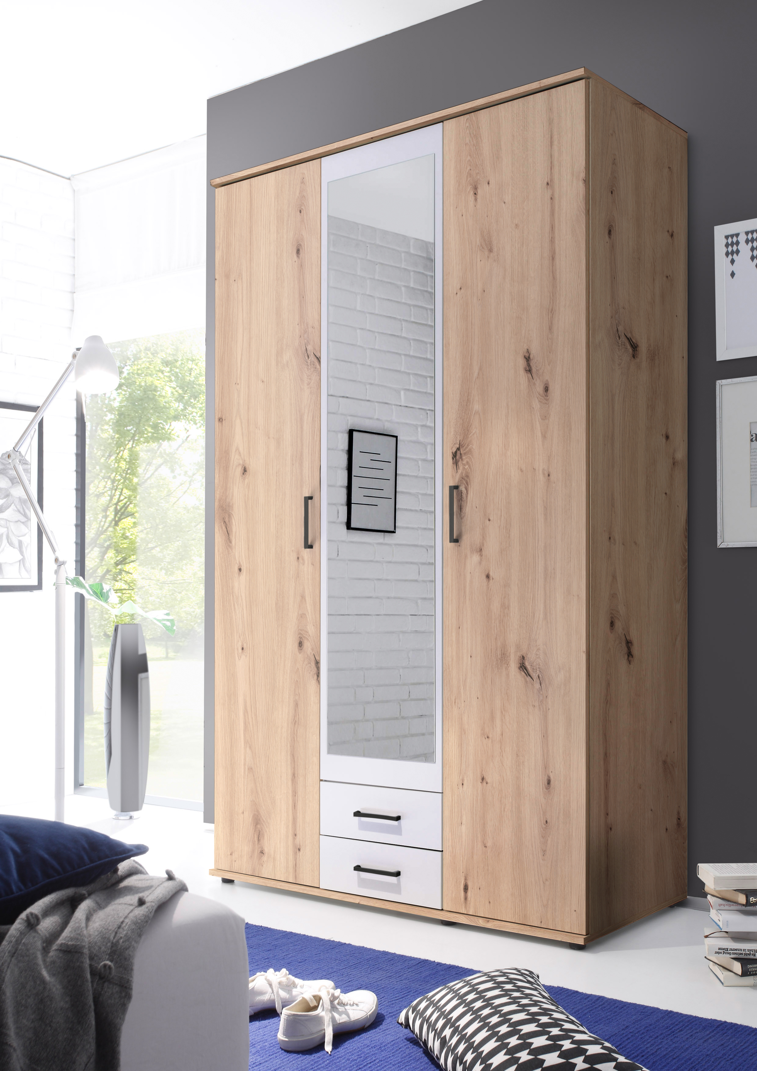 Mit diesem modernen Kleiderschrank lässt sich jedes Jugend- oder Schlafzimmer geschmackvoll einrichten. Dieser attraktive Kleiderschrank inklusive Spiegelelement auf der Mitteltür repräsentiert einen zeitlosen Einrichtungsstil. In den Schubkästen und hinter den Schranktüren gibt es viel Stauraum für Kleidungsstücke und andere Dinge.Der angesagte Kleiderschrank ist praktisch geeignet für jede Jugend-/Schlafzimmereinrichtung oder für die erste eigene Wohnung. Sie haben die Wahl: 3 oder 4 Türen?