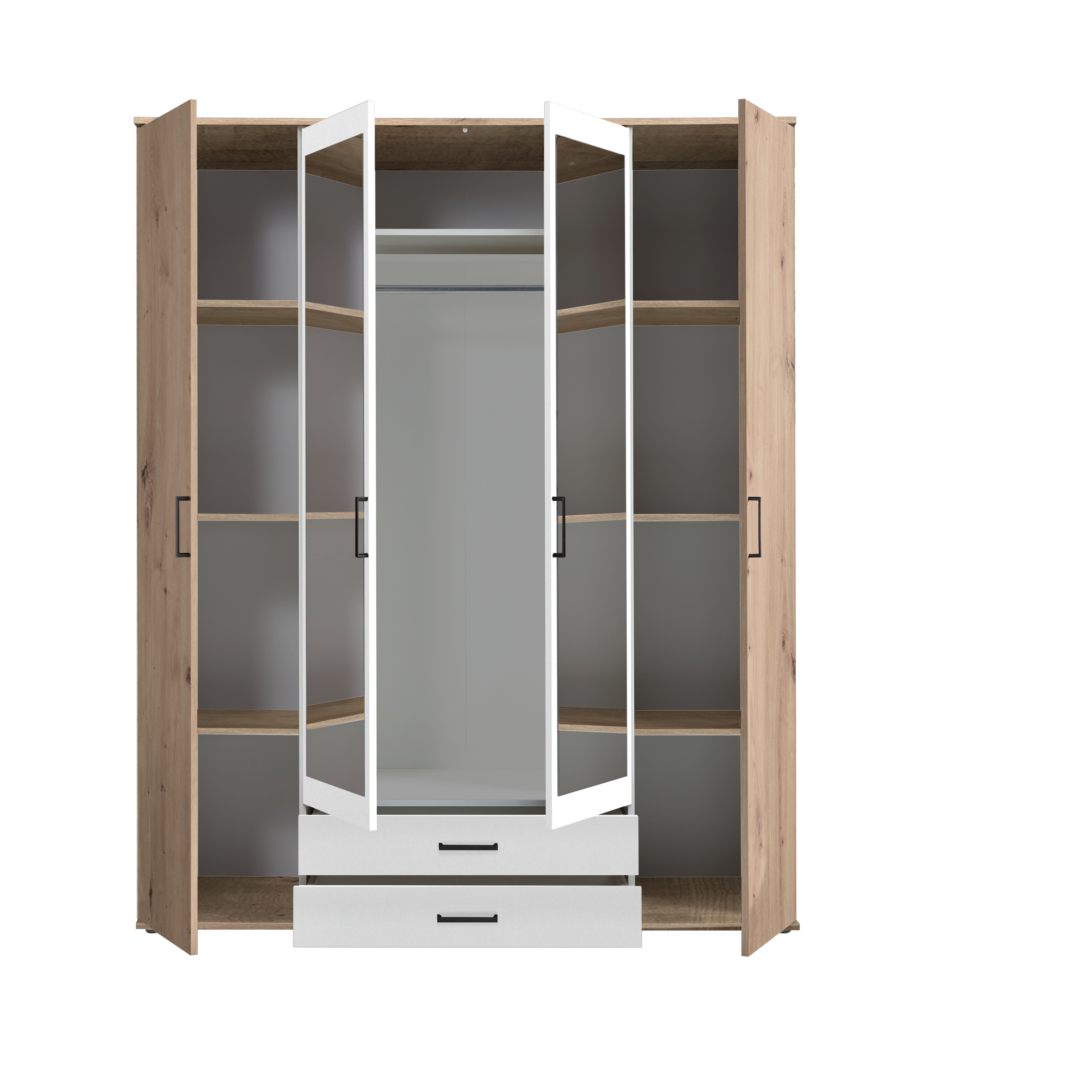 - LIEFERUMFANG - Im Paket enthalten sind: 1x Drehtüren-Schrank (viertürig) inkl. Einlegeböden, Kleiderstange und Montage-Material.