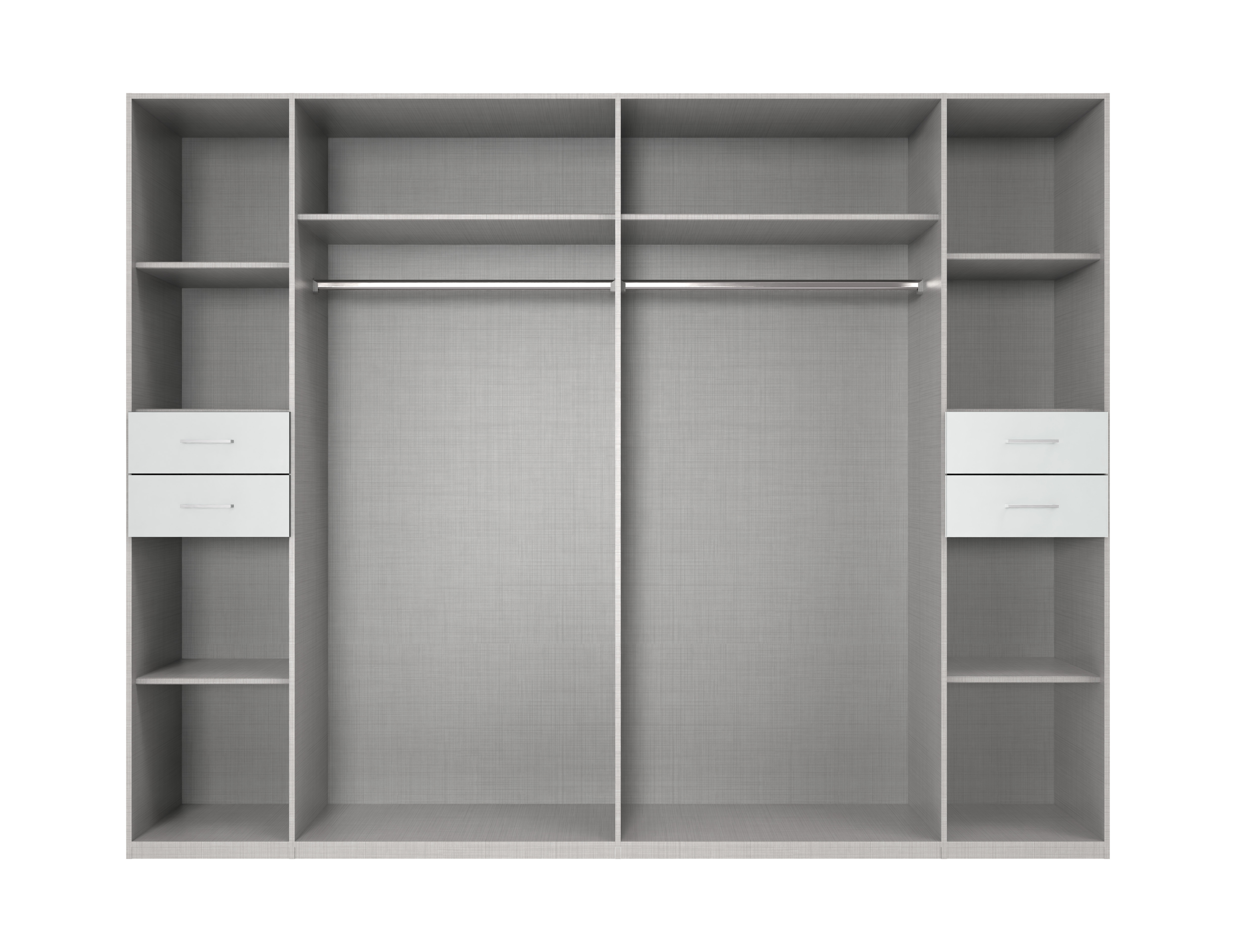 mittlere Türen (zwischen den Schubladen): Glas weiß