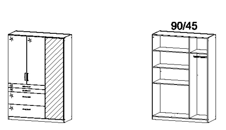 | Ausstattung Schränke: | Schublade(n), Spiegel | ||