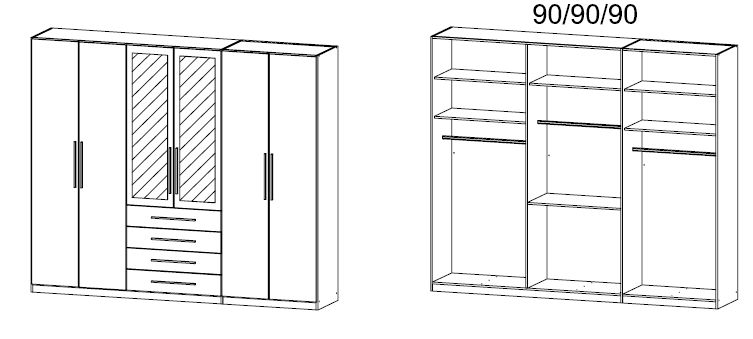 | Ausstattung Schränke: | Schublade(n), Spiegel |