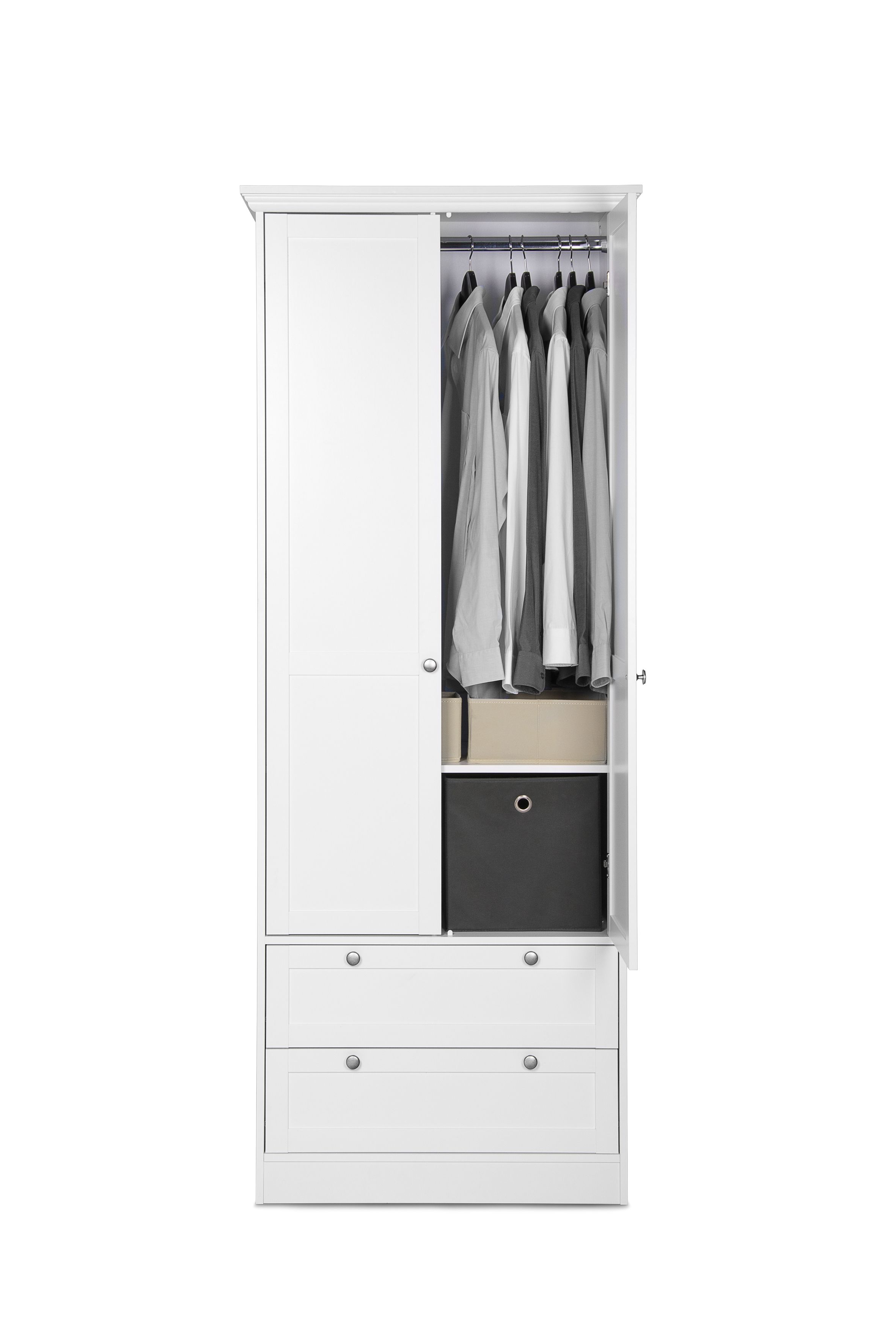 Um ein umkippen zu verhindern ist im Lieferumfang Wandbefestigungsmaterial enthalten.