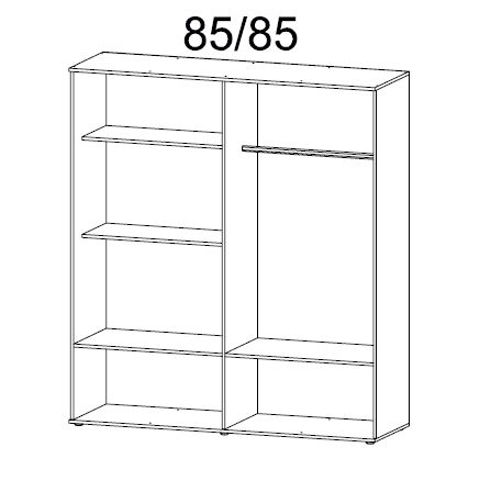 - ausgestattet mit vier Türen, zwei Fachböden und einer Kleiderstange