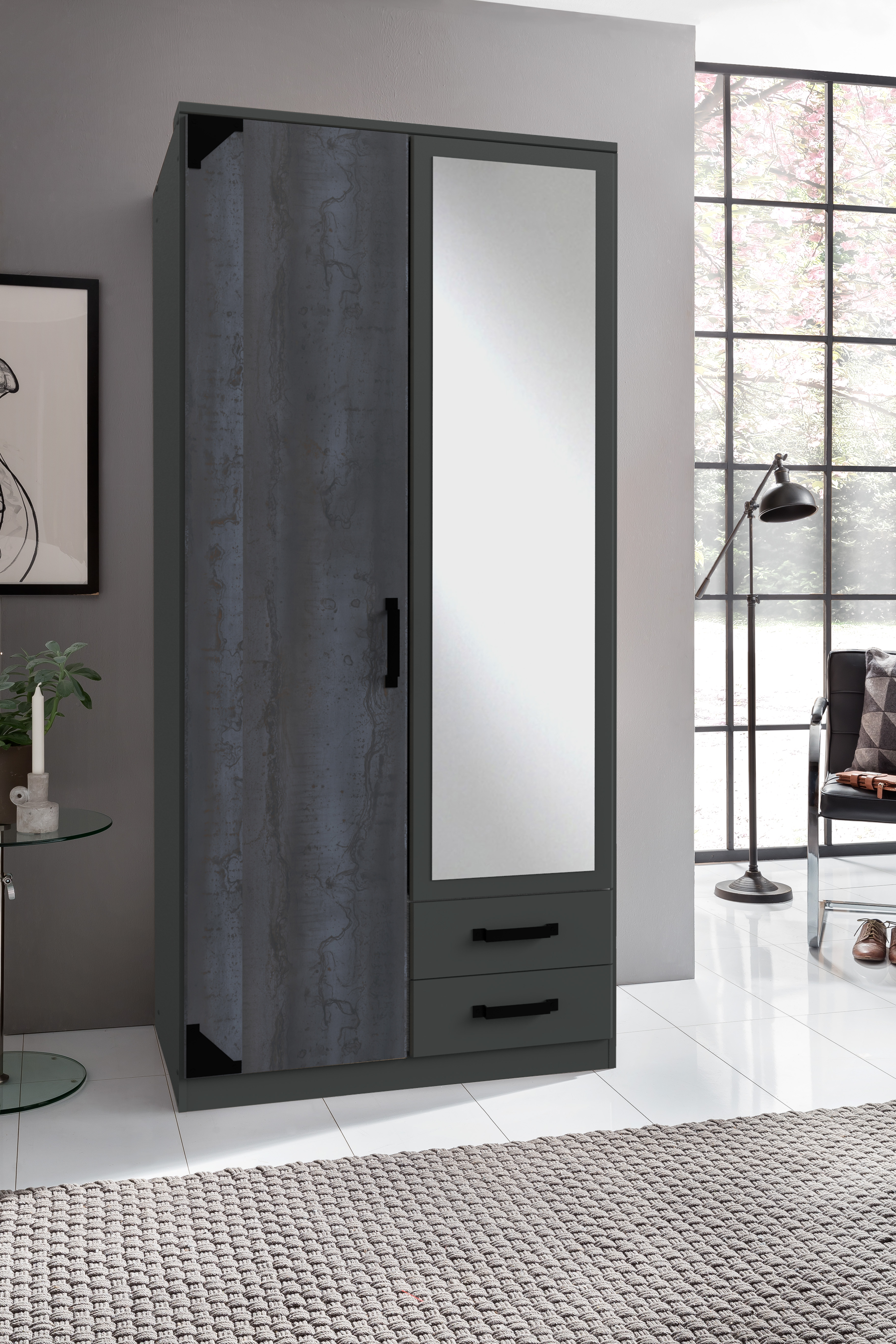 2 Türen, davon 1 Tür mit Spiegel