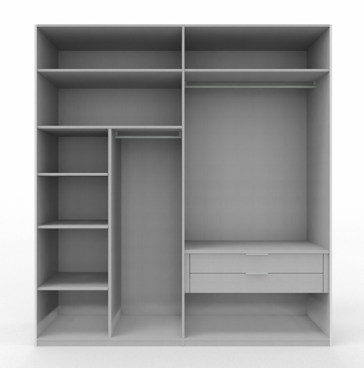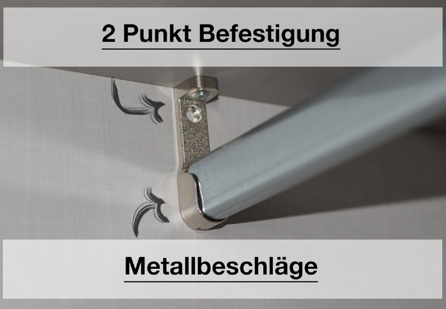 Die Detailbilder (Innenausstattung, Griff und Kleiderstange) zeigen den Schrank teilweise in einer anderen Ausführung, sind aber ansonsten identisch mit diesem Modell.
