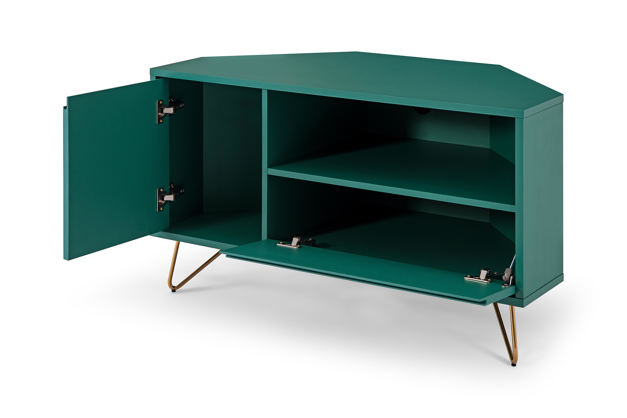 - Eck TV-Lowboard im skandinavischen Design in matt grün lackiert