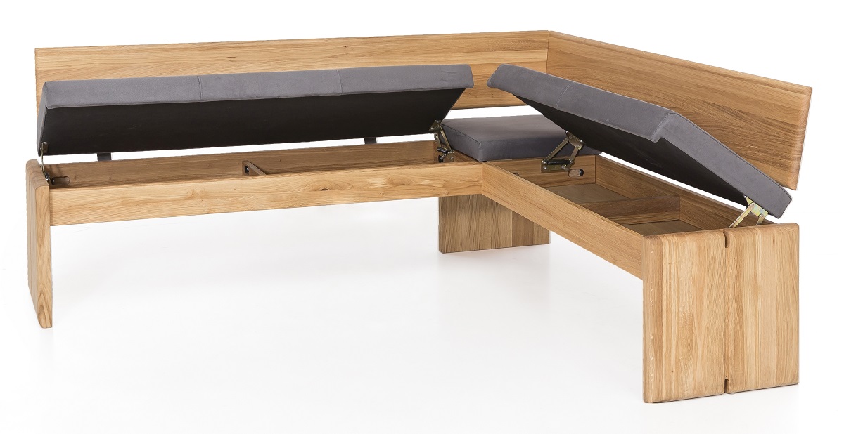 | Ausstattung Eckbänke: | Rückenlehne, Stauraum, inkl. Sitzkissen | ||
