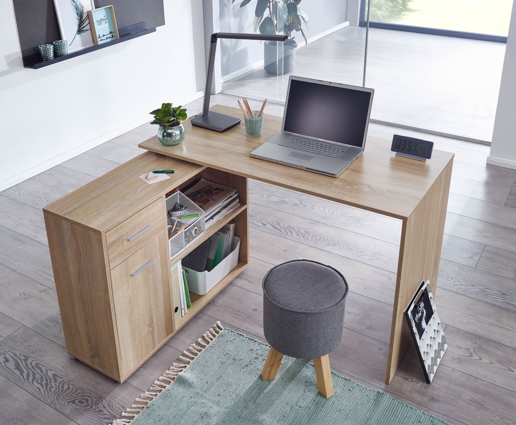 - Durch das Melaminharz ist der Winkelschreibtisch zudem wasserabweisend