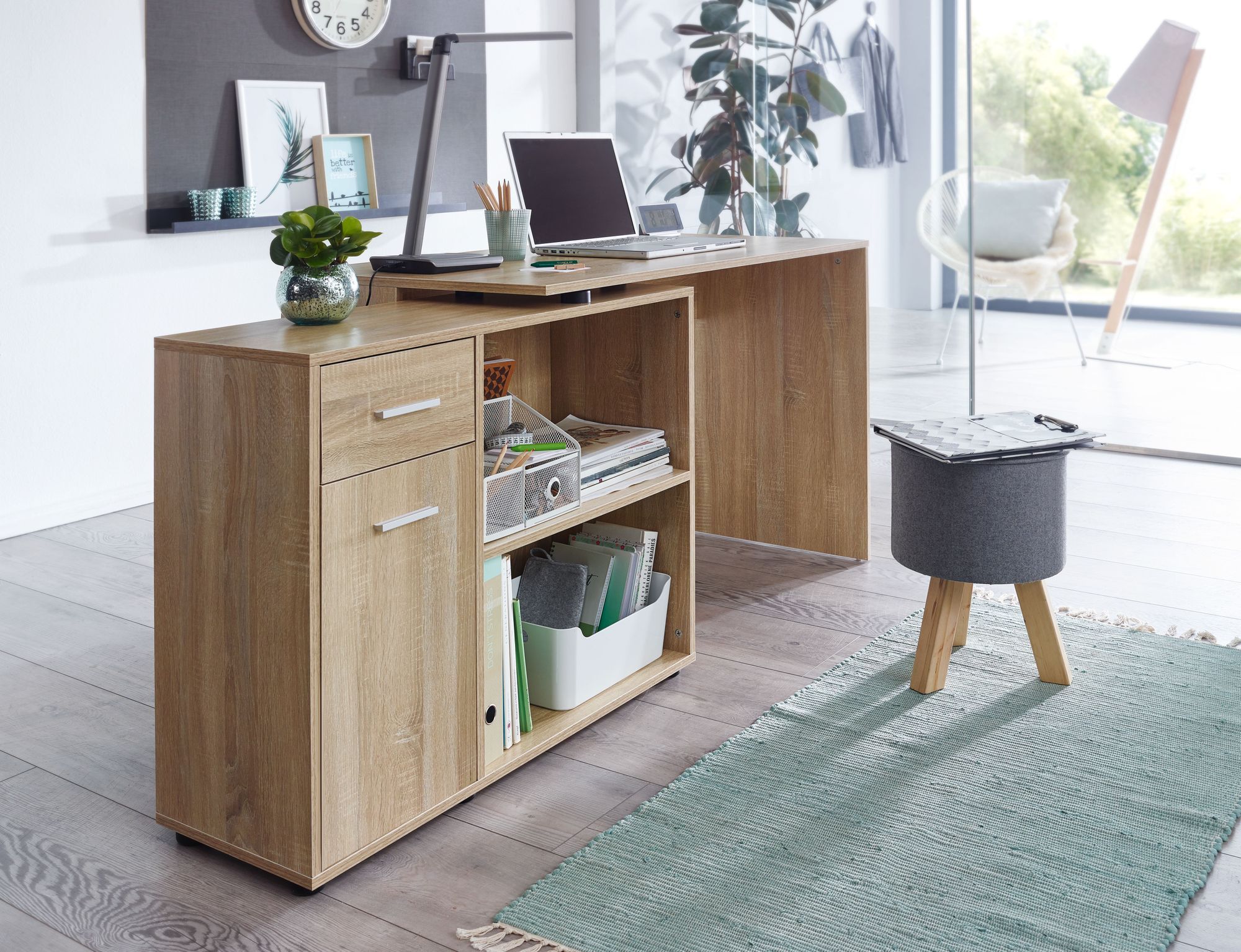 - Das Regal lässt sich drehen - dadurch ist der Bürotisch auch als Eckschreibtisch verwendbar