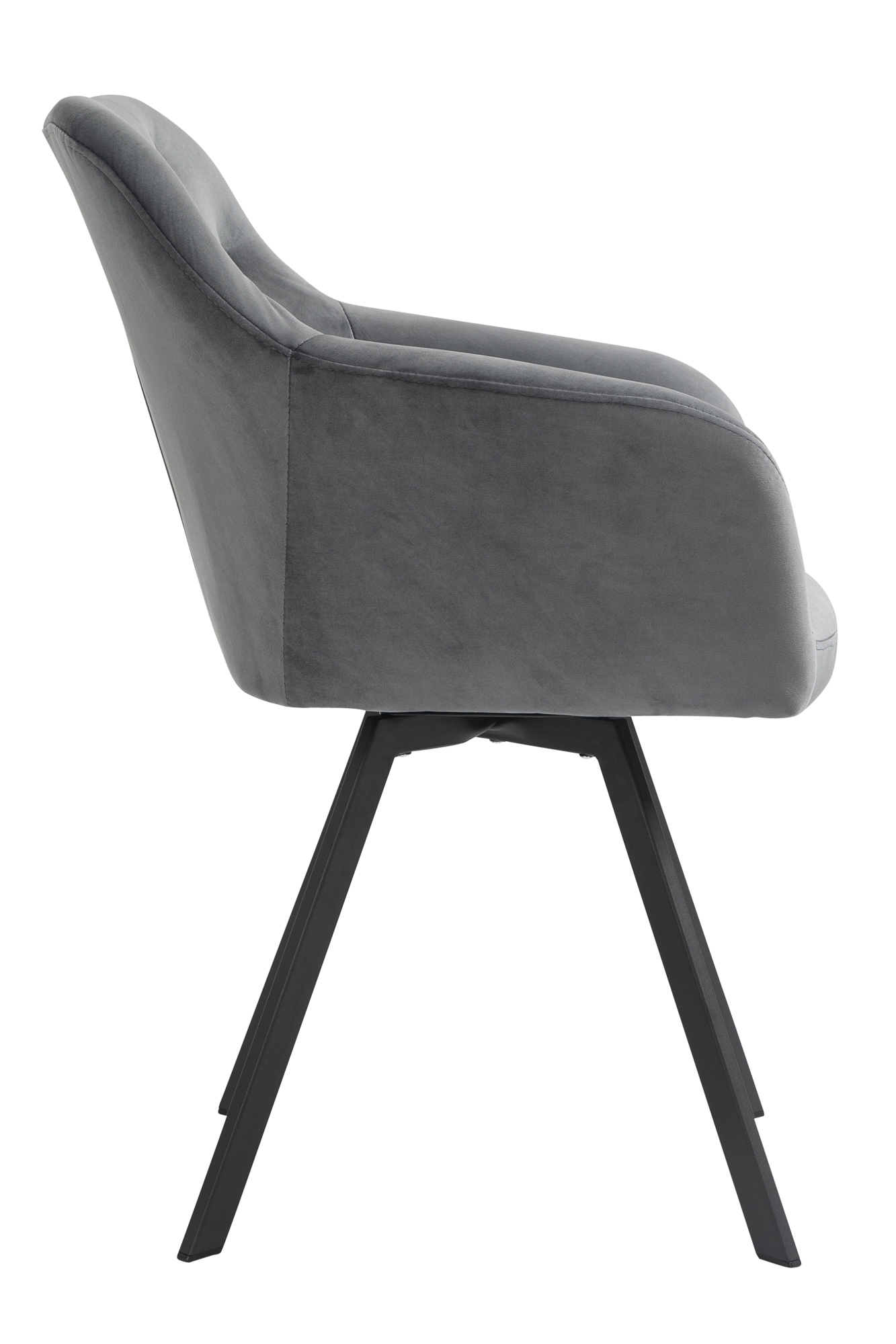 Vintage-Flair mit glamourösem Touch: Die 5-teilige Essgruppe besteht aus einem Tisch aus massiver Akazie, sowie 4 Armlehnstühlen mit edlem Samt-Bezug. Die 26 mm dicke Tischplatte besteht aus Akazienholz und wurde aus echter Baumkante gefertigt. Das U-Gestell aus schwarz lackiertem Metall verleiht dem Tisch eine sehr gute Stabilität und ist das passende Gegenstück zur schönen Tischplatte in der Farbe Cognac. Die Stühle setzen passend dazu schicke Akzente. Die üppige Polsterung der Sitzfläche und Armlehnen sorgt für optimalen Sitzkomfort, der hochwertige Look wird abgerundet durch die Knopfheftung im Rücken und das robuste Gestell, bestehend aus vier abgeschrägten Beinen in pulverbeschichtetem schwarzem Metall. Der Extraclou des Stuhls: Die 360° Drehfunktion, die für Bewegungsfreiheit und Komfort sorgt. Hinweis: Da es sich bei diesem Massivholztisch um ein Naturprodukt handelt, kann es zu Astlöchern oder unterschiedlichen Farbschmückungen kommen, welche jedoch keine Fehler darstellen, sondern den individuellen Charakter des Echtholzes unterstreichen.