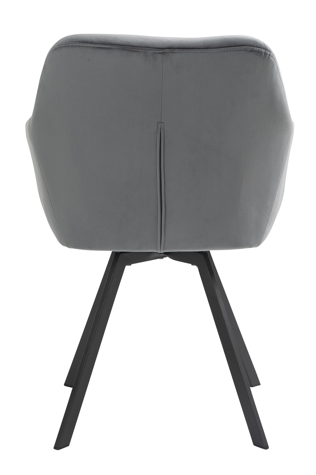 Vintage-Flair mit glamourösem Touch: Die 5-teilige Essgruppe besteht aus einem Tisch aus massiver Akazie, sowie 4 Armlehnstühlen mit edlem Samt-Bezug. Die 26 mm starke Tischplatte aus massiver Akazie wird mit OSMO Hartwachs-Möbelöl in seidenmattem Finish behandelt, so dass der Tisch vor Wasser, Schmutz und Abrieb geschützt ist. Besonderes Highlight: Das U-Gestell aus schwarz lackiertem Metall verleiht dem Tisch eine sehr gute Stabilität und ist das passende Gegenstück zur Tischplatte in warmem Walnusston. Mit diesem Esstisch mit echter Baumkante holen Sie sich ein Stück Natur in die eigenen vier Wände. Die Stühle setzen passend dazu schicke Akzente. Die üppige Polsterung der Sitzfläche und Armlehnen sorgt für optimalen Sitzkomfort, der hochwertige Look wird abgerundet durch die Knopfheftung im Rücken und das robuste Gestell, bestehend aus vier abgeschrägten Beinen in pulverbeschichtetem schwarzem Metall. Der Extraclou des Stuhls: Die 360° Drehfunktion, die für Bewegungsfreiheit und Komfort sorgt. Hinweis: Da es sich bei diesem Massivholztisch um ein Naturprodukt handelt, kann es zu Astlöchern oder unterschiedlichen Farbschmückungen kommen, welche jedoch keine Fehler darstellen, sondern den individuellen Charakter des Echtholzes unterstreichen.