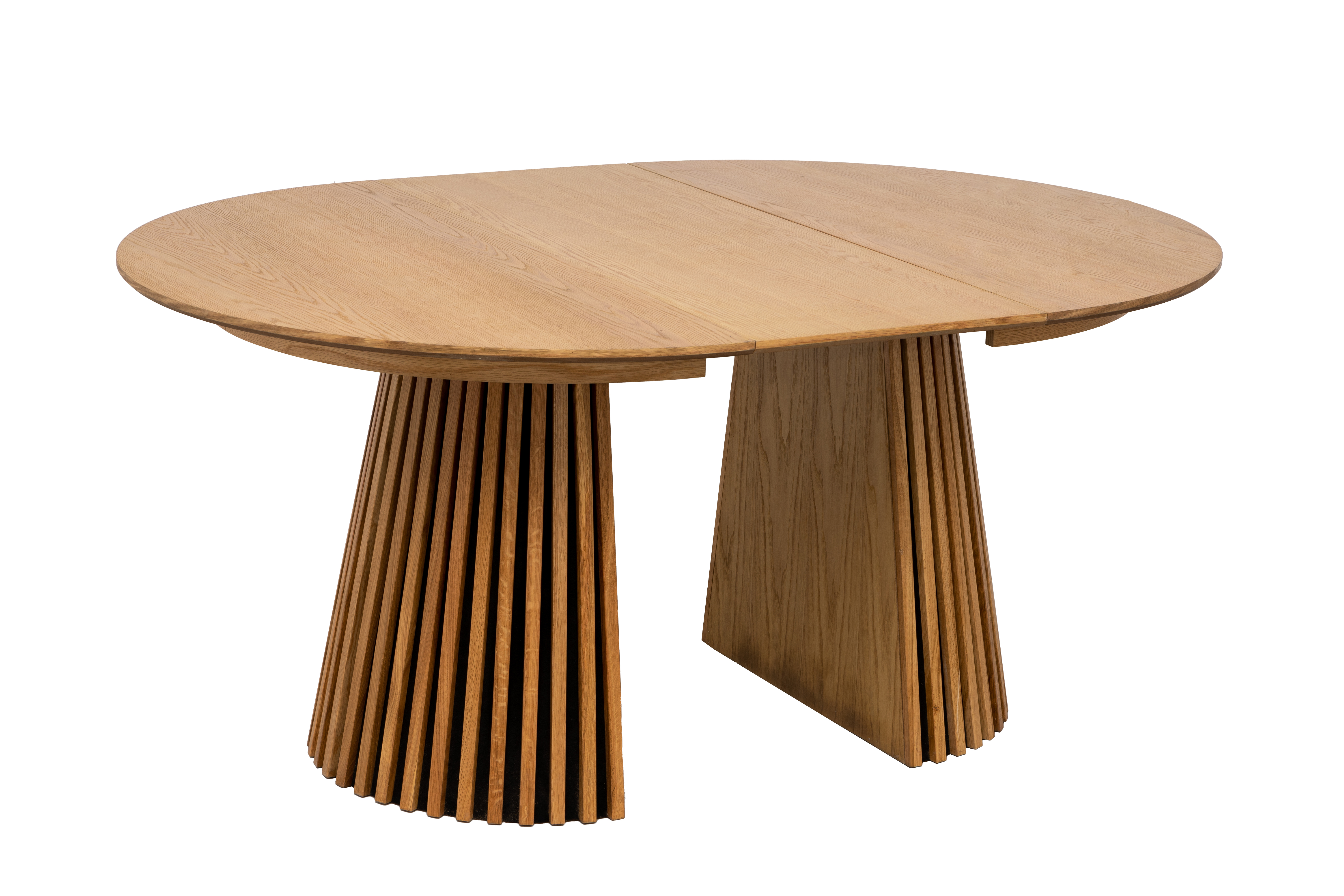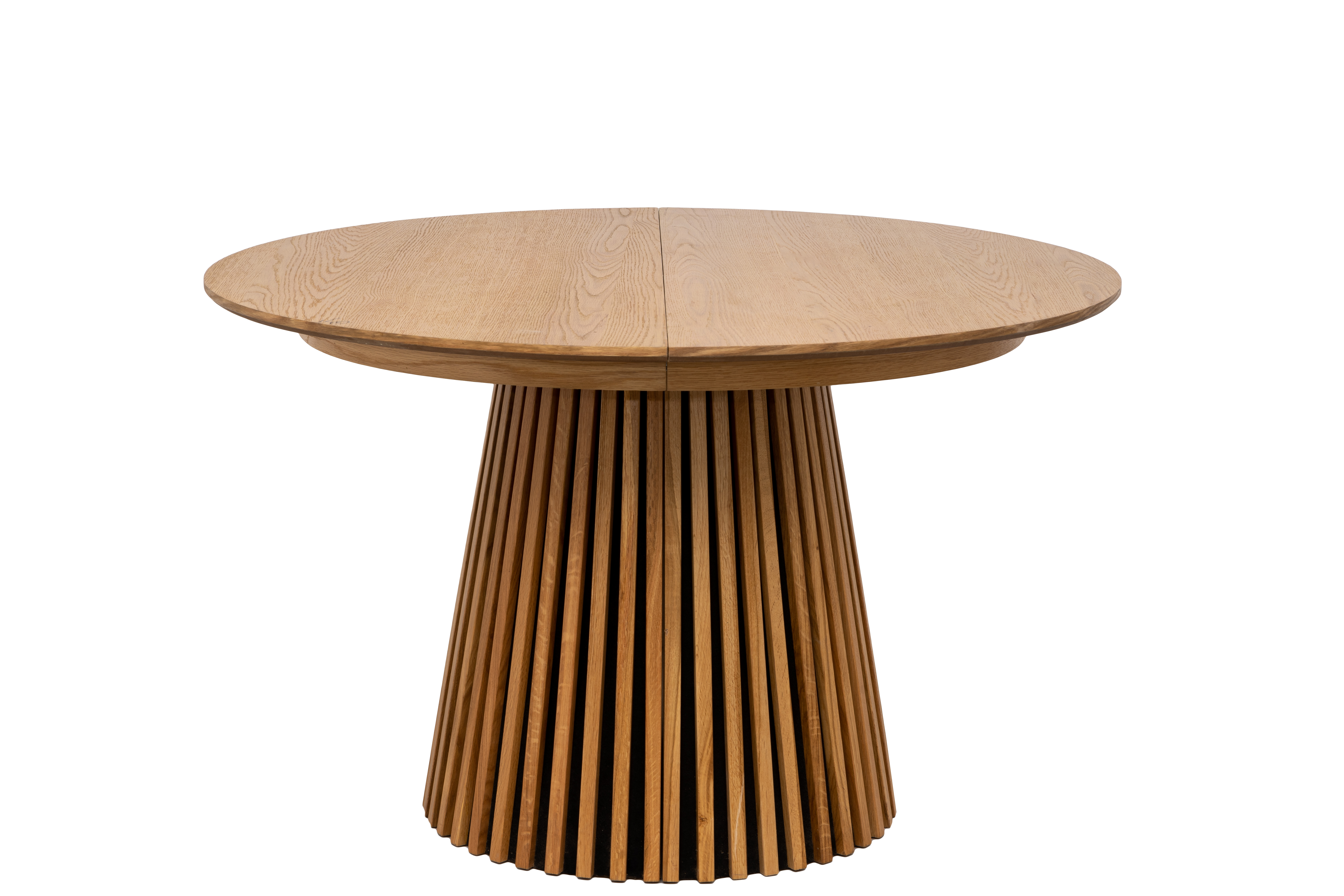 Der robuste Säulenfuß aus massiver Eiche Natur setzt einen beeindruckenden Blickfang und sorgt gleichzeitig für ausgezeichnete Stabilität und Langlebigkeit. Massivholz steht für hochwertige Verarbeitung und zeitlose Eleganz, die im Wohn- oder Esszimmer zum Charakterstück wird.