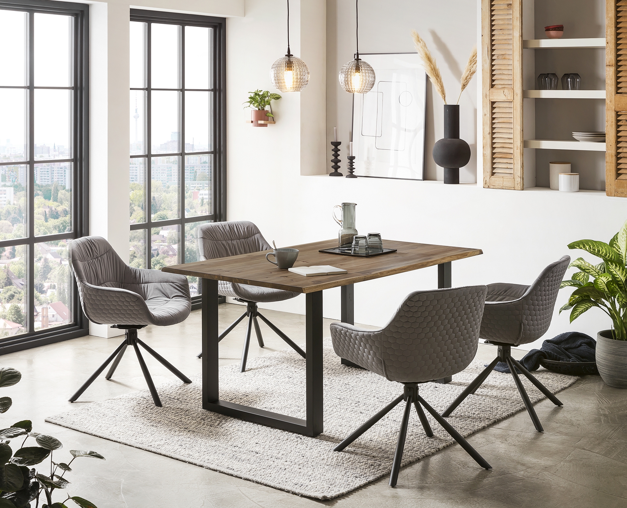 Massivholzmöbel aus Akazienholz gehören zu den zeitlos schönen Möbeln, die niemals aus der Mode kommen. Die 26 mm dicke Tischplatte besteht aus Akazienholz und wurde aus echter Baumkante gefertigt. Das U-Gestell aus schwarz lackiertem Metall verleiht dem Tisch eine sehr gute Stabilität und ist das passende Gegenstück zur schönen Tischplatte in der Farbe Walnuss. Dieser Esszimmertisch ist mehr als nur ein Sitzplatz zum Essen. Holen Sie sich ein Stück Natur in die eigenen vier Wände. Da es sich bei diesem Massivholztisch um ein Naturprodukt handelt, kann es zu Astlöchern oder unterschiedlichen Farbschmückungen kommen, welche jedoch keine Fehler darstellen, sondern den individuellen Charakter des Echtholzes unterstreichen. Auch die Tiefe kann aufgrund der unregelmäßigen und asymmetrischen Formgebung um mehrere Zentimeter variieren. Alle diese Unterschiede machen diese Baumkantentisch zu einem echten Unikat.