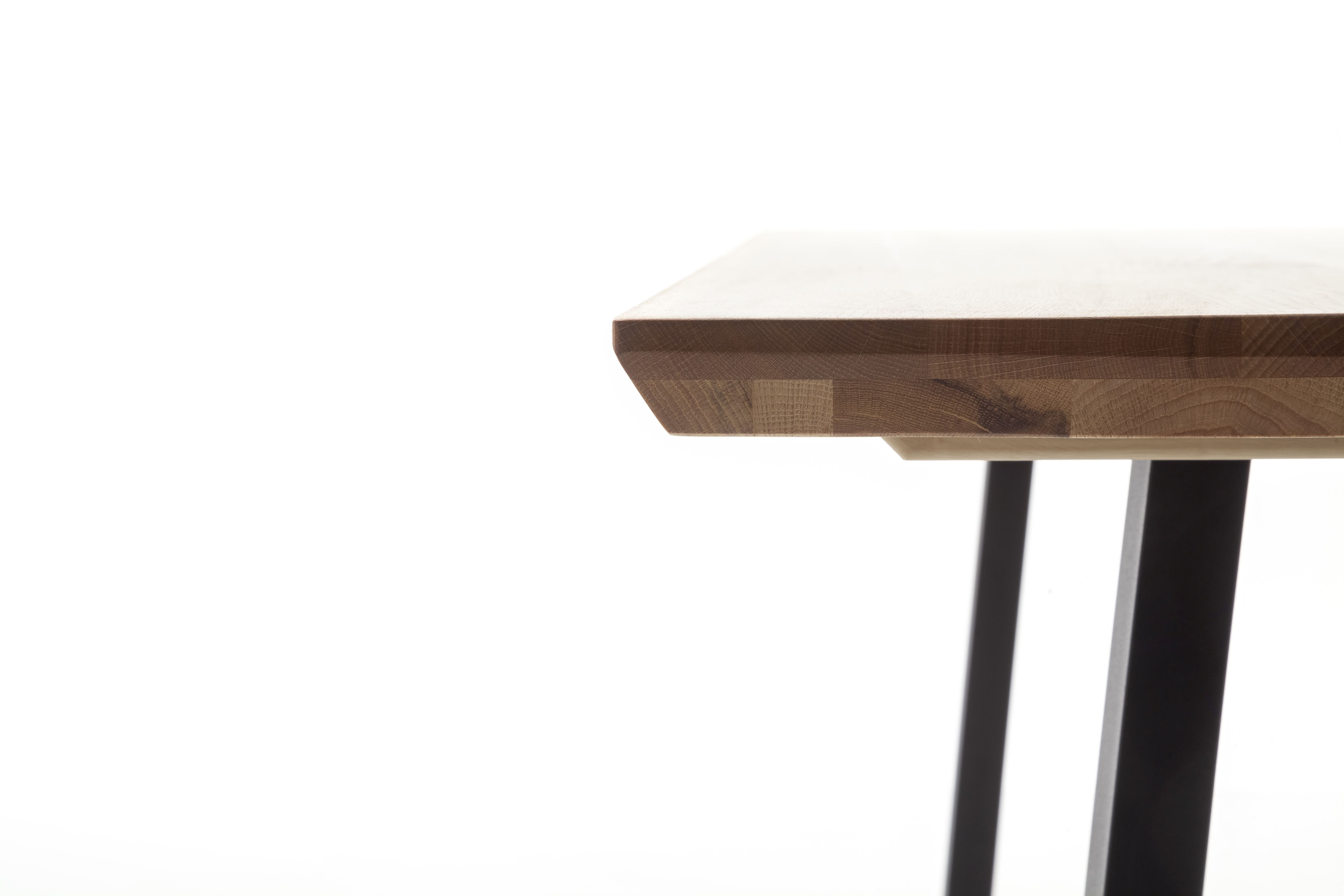 Tischplatte: Zerreiche massiv (Rumänien) geölt, mit durchgehender Lamelle, aufgedoppelt