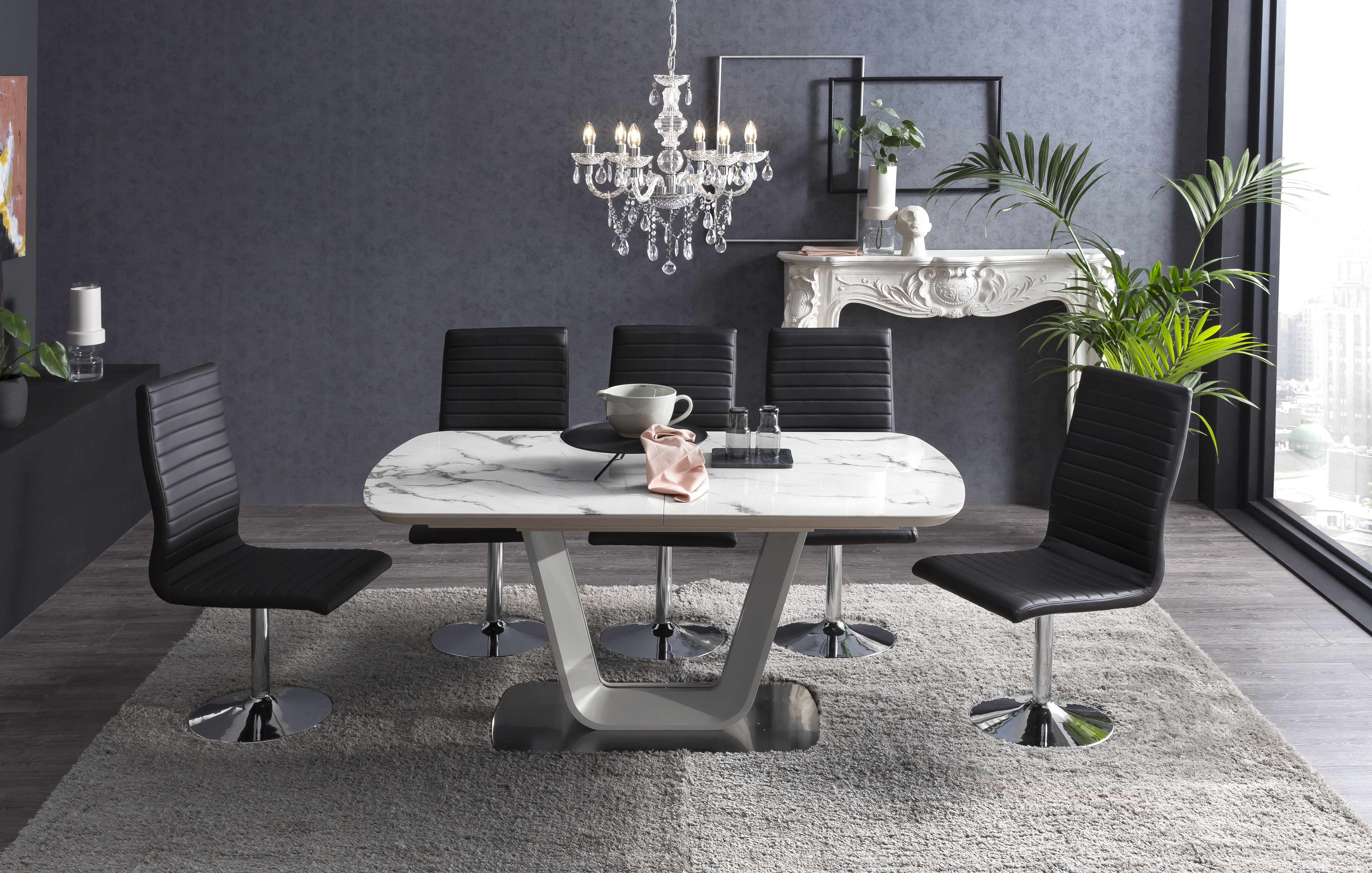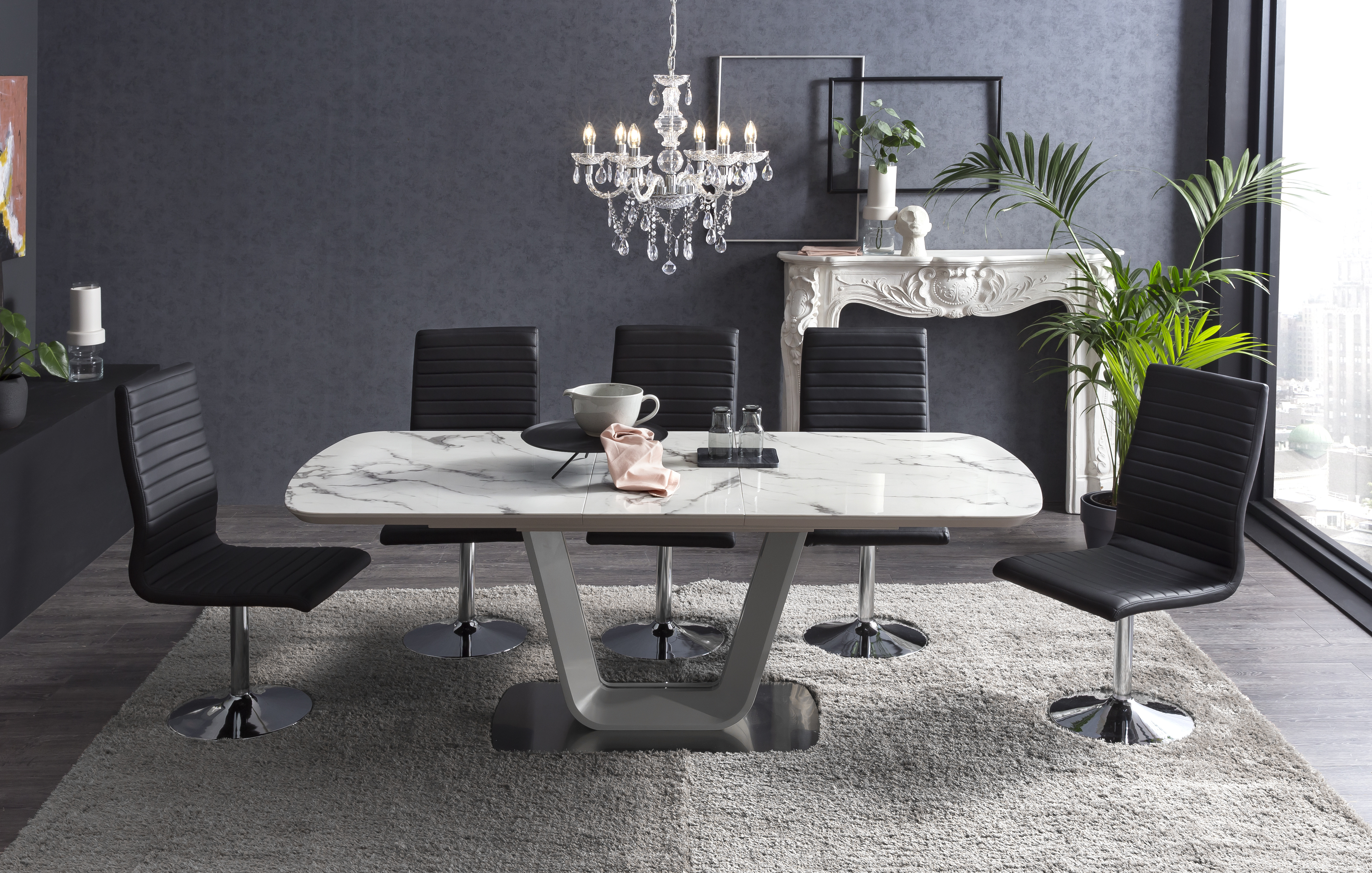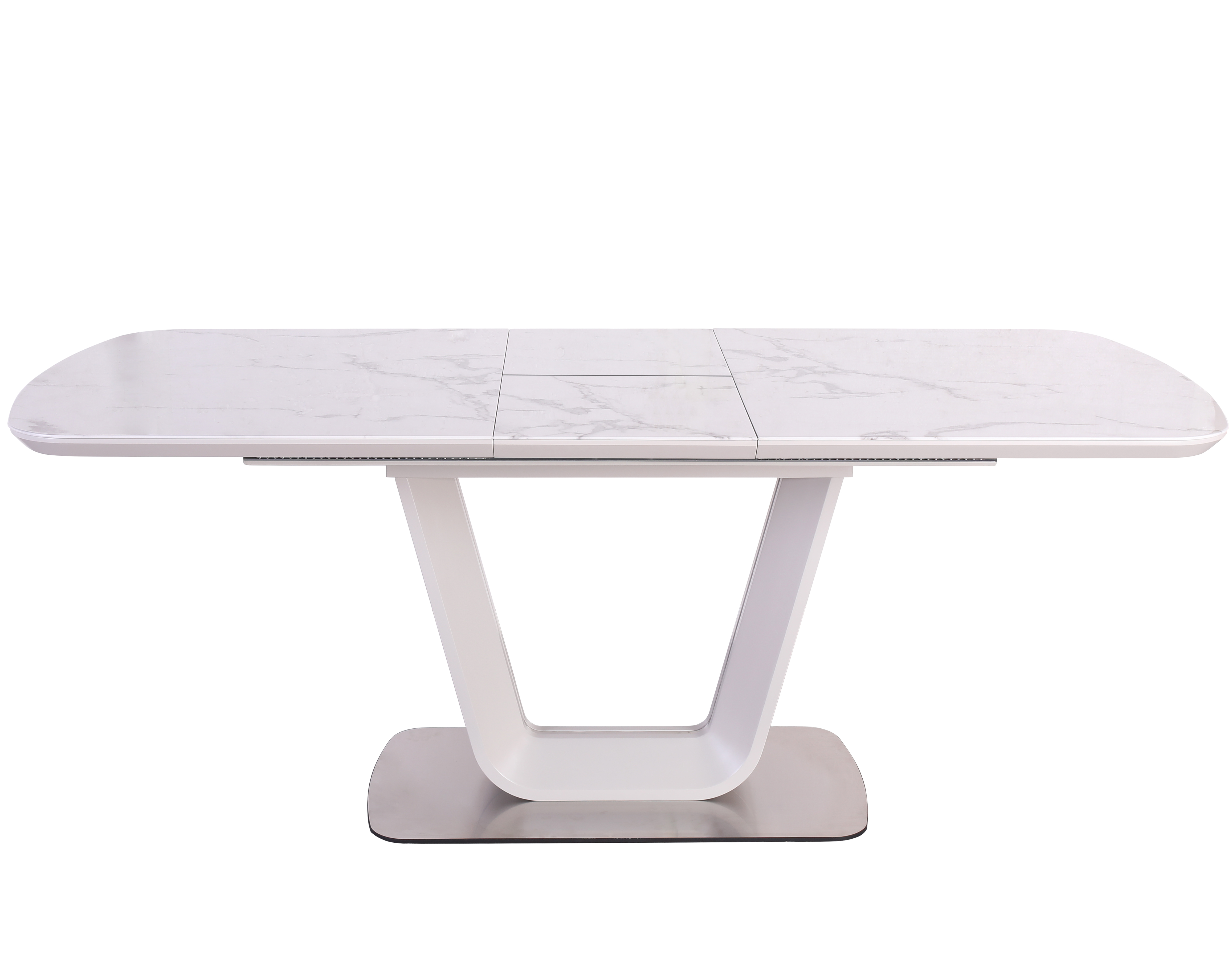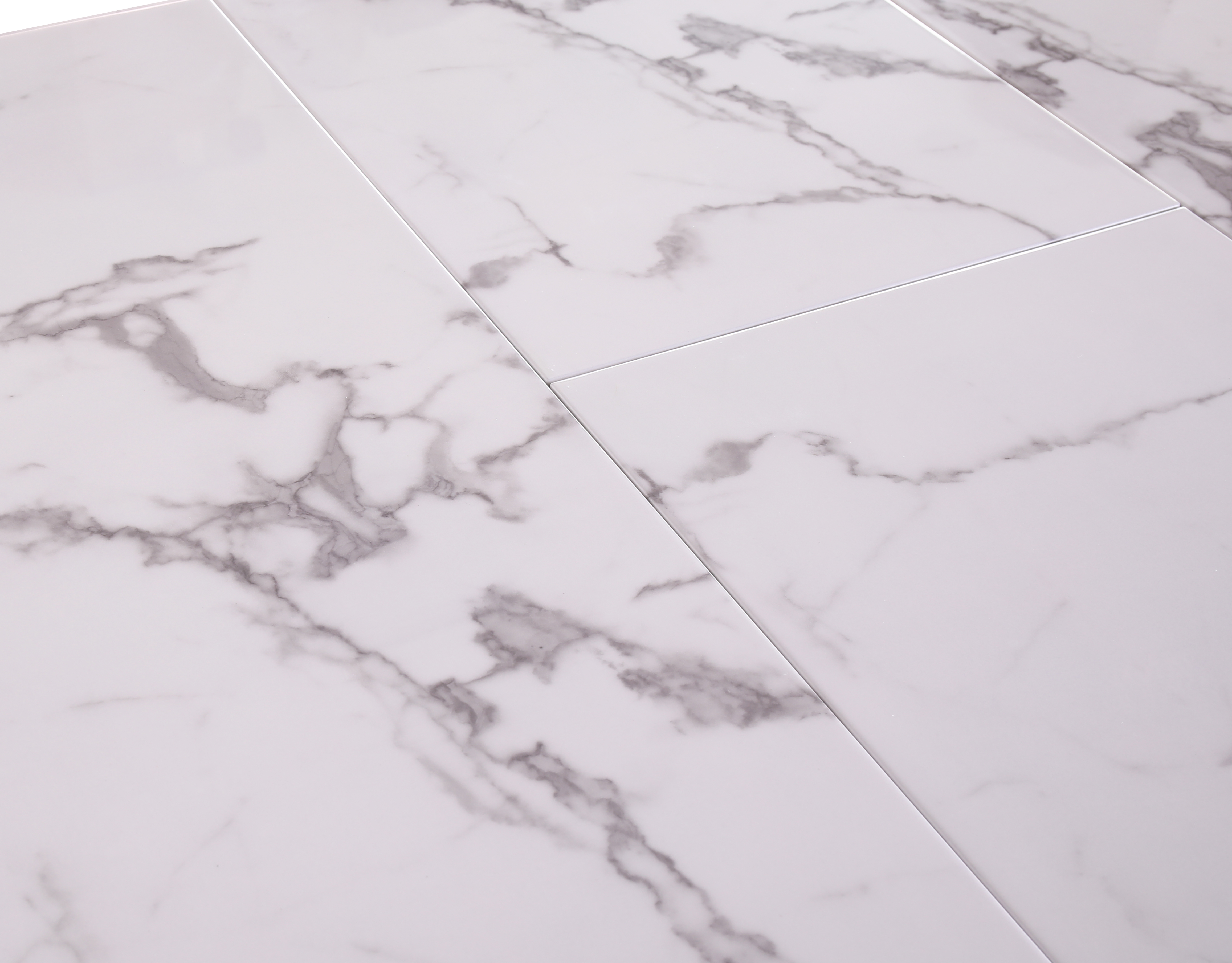 Tischplatte: MDF (Mitteldichte Holzfaserplatte) mit Sicherheitsglas in Marmoroptik weiß