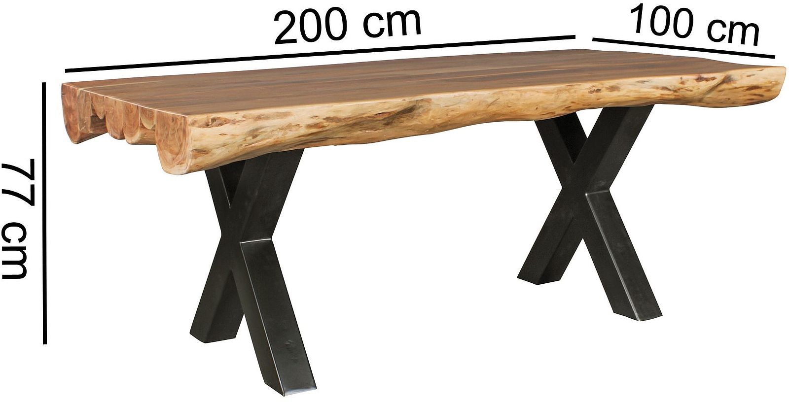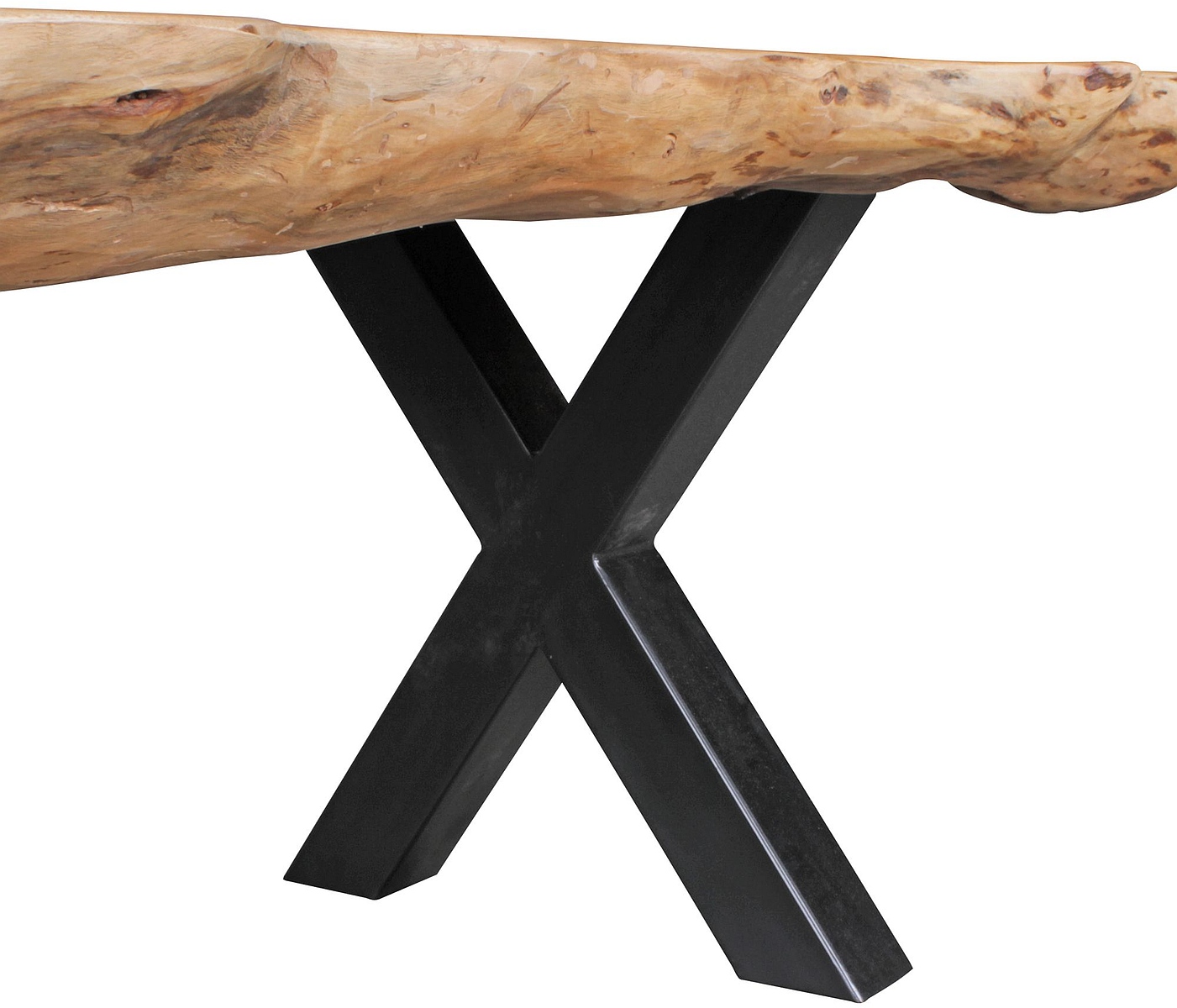 - DESIGN ✔ Esstisch im rustikalen Blockhaus Stil // Esszimmertisch aus natürlichem Vollholz // Tisch steht auf massiven x-förmigen Metallbeinen