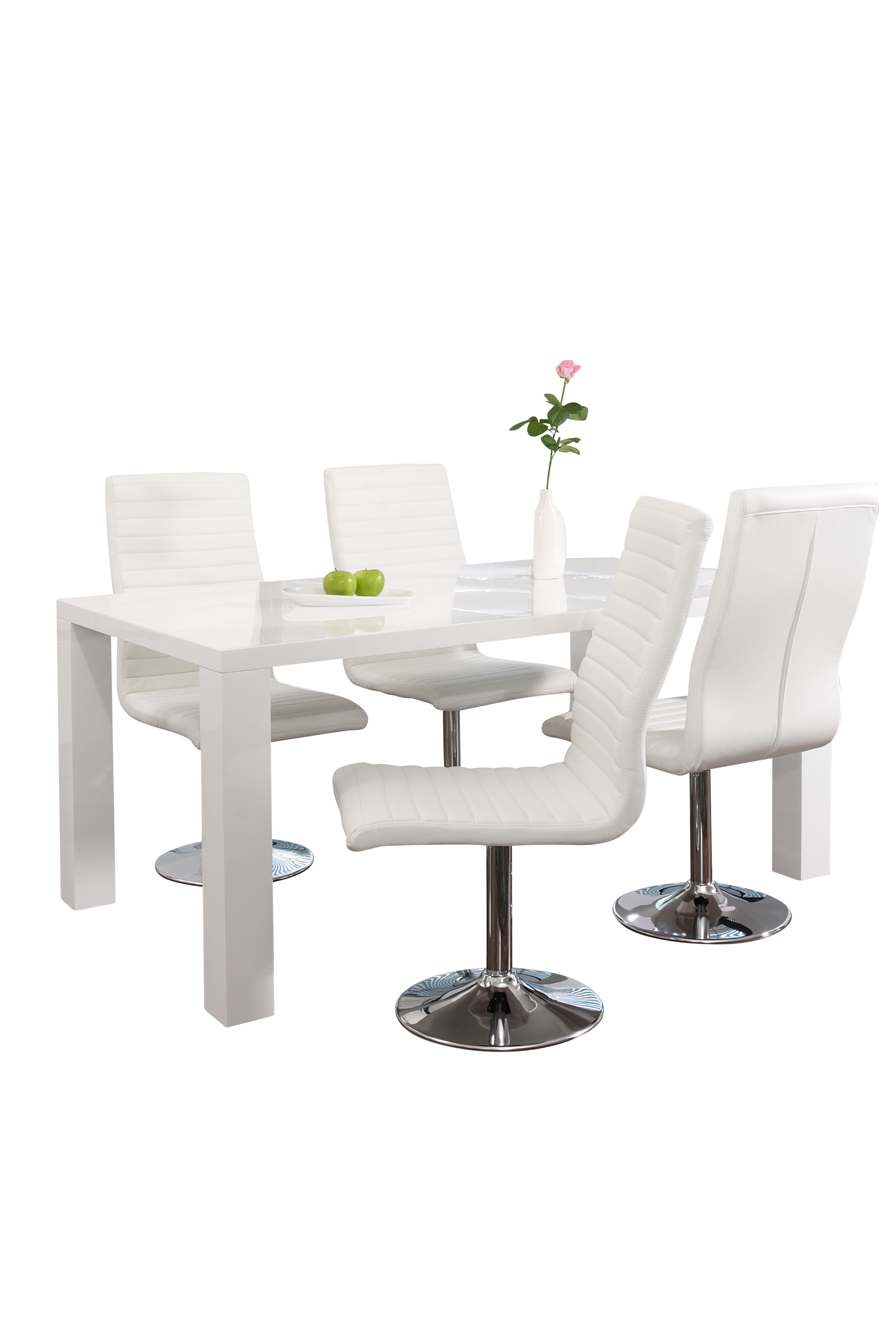 Tischplatte und Gestell: MDF (Mitteldichte Holzfaserplatte) in Hochglanz Weiß lackiert