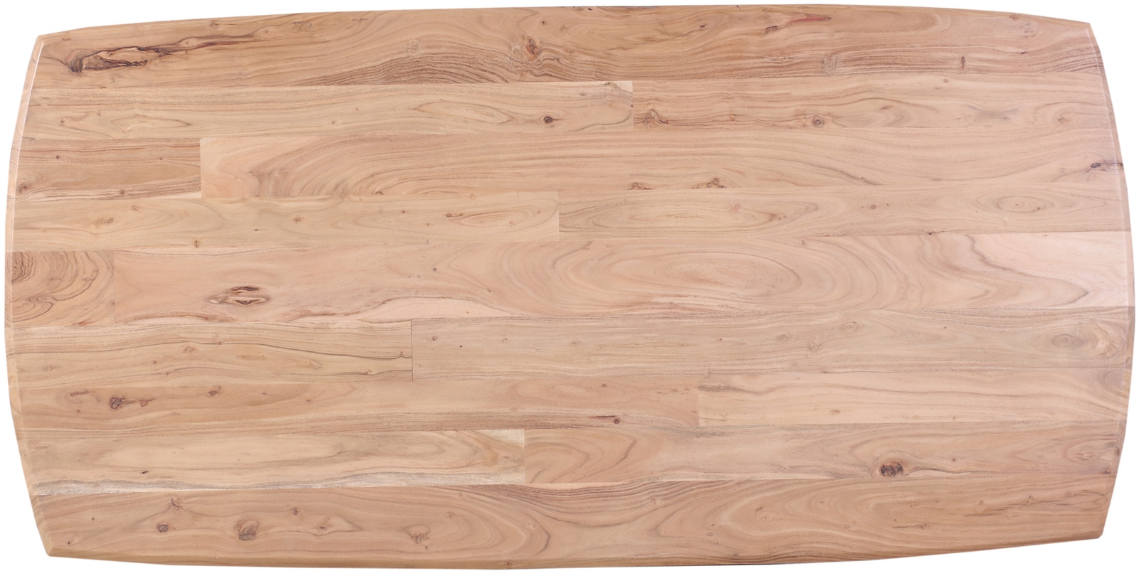 Tischplatte: Akazie massiv (Asien) natur, gebeizt und lackiert; Zierleiste in MDF schwarz lackiert