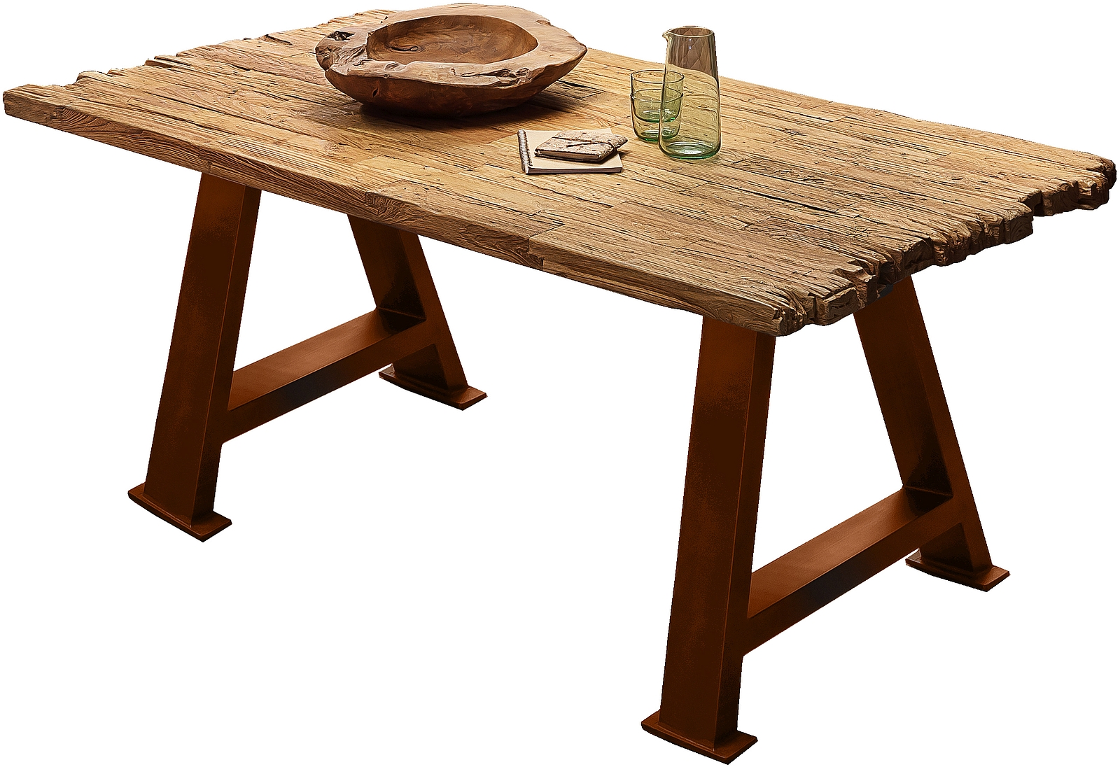 Tischplatte: Receyceltes Teakholz massiv natur (Indonesien) mit unregelmäßiger Kante an den kurzen Seiten
