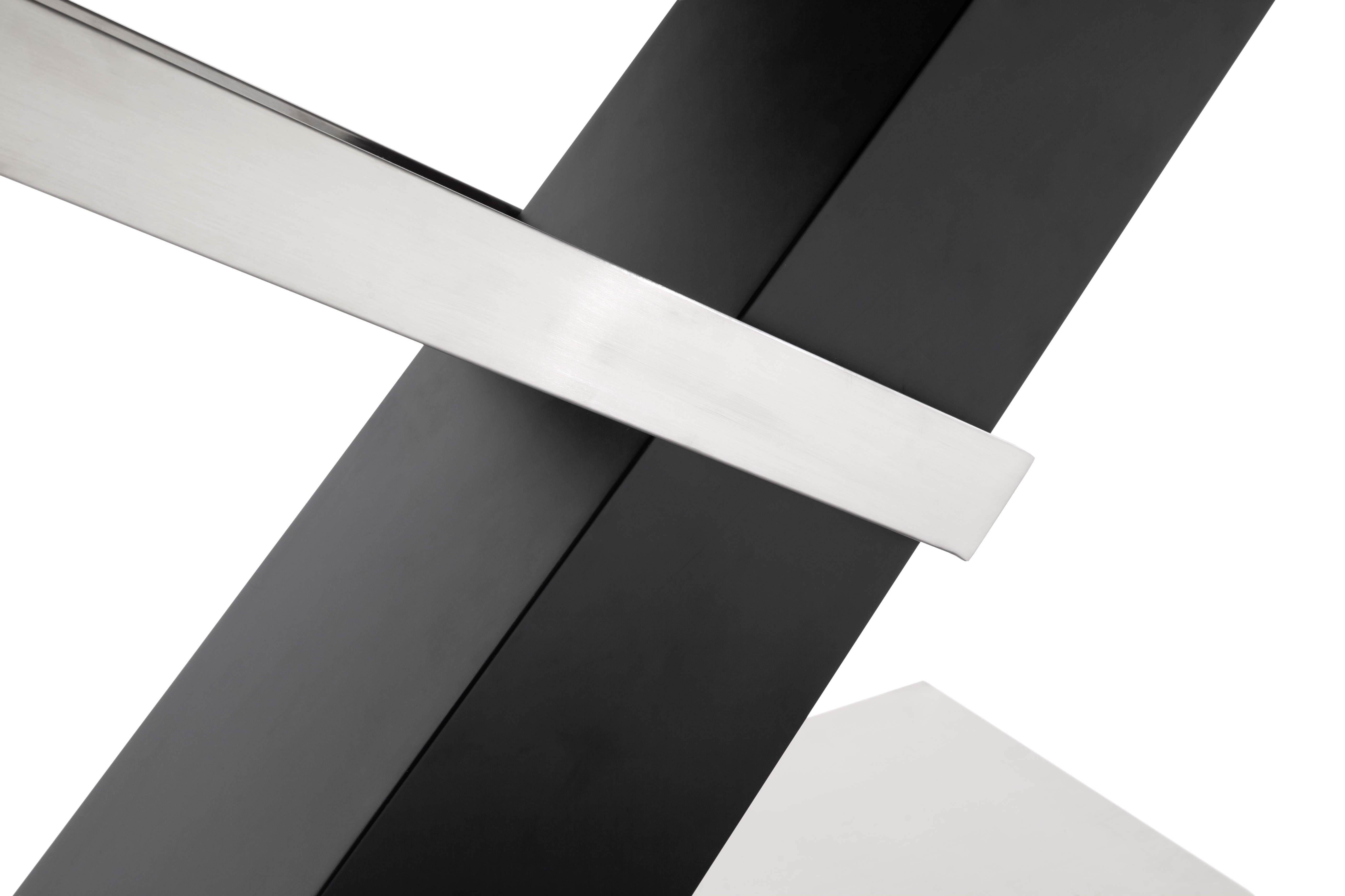 Säule: MDF (Mitteldichte Holzfaserplatte) in schwarz matt lackiert und Edelstahl gebürstet