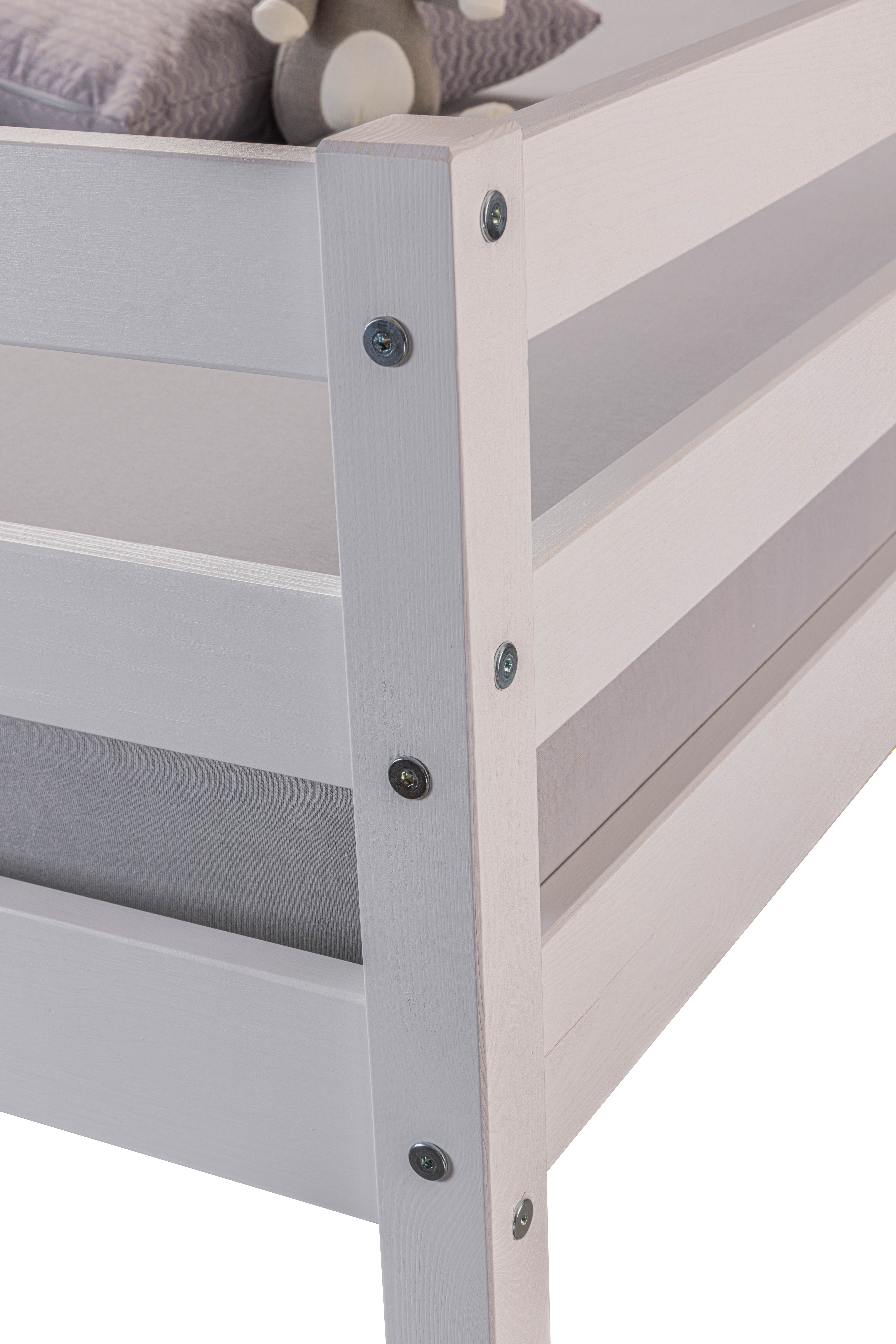Das helle und luftige Weiß verleiht dem Raum eine freundliche Atmosphäre und lässt sich mühelos in jedes Farbschema integrieren. Die robuste Konstruktion sorgt für Stabilität und Sicherheit, während das verspielte Design mit einer Wolkenform an den Seitenteilen jedes Kind begeistern wird.