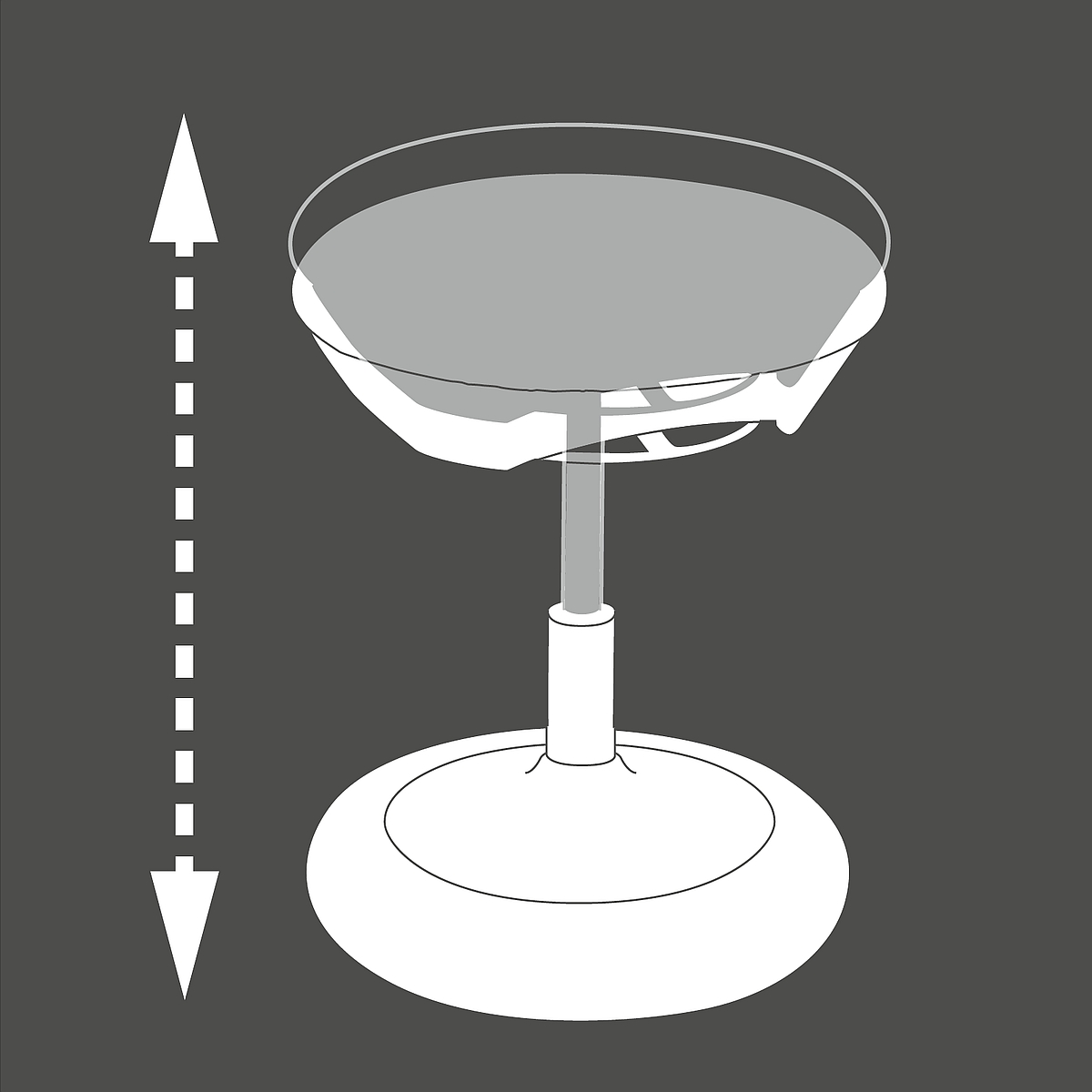 stufenlose Sitzhöhenverstellung mit weiß lackierter Gasfeder über Ringauslösehebel unter dem Sitz
