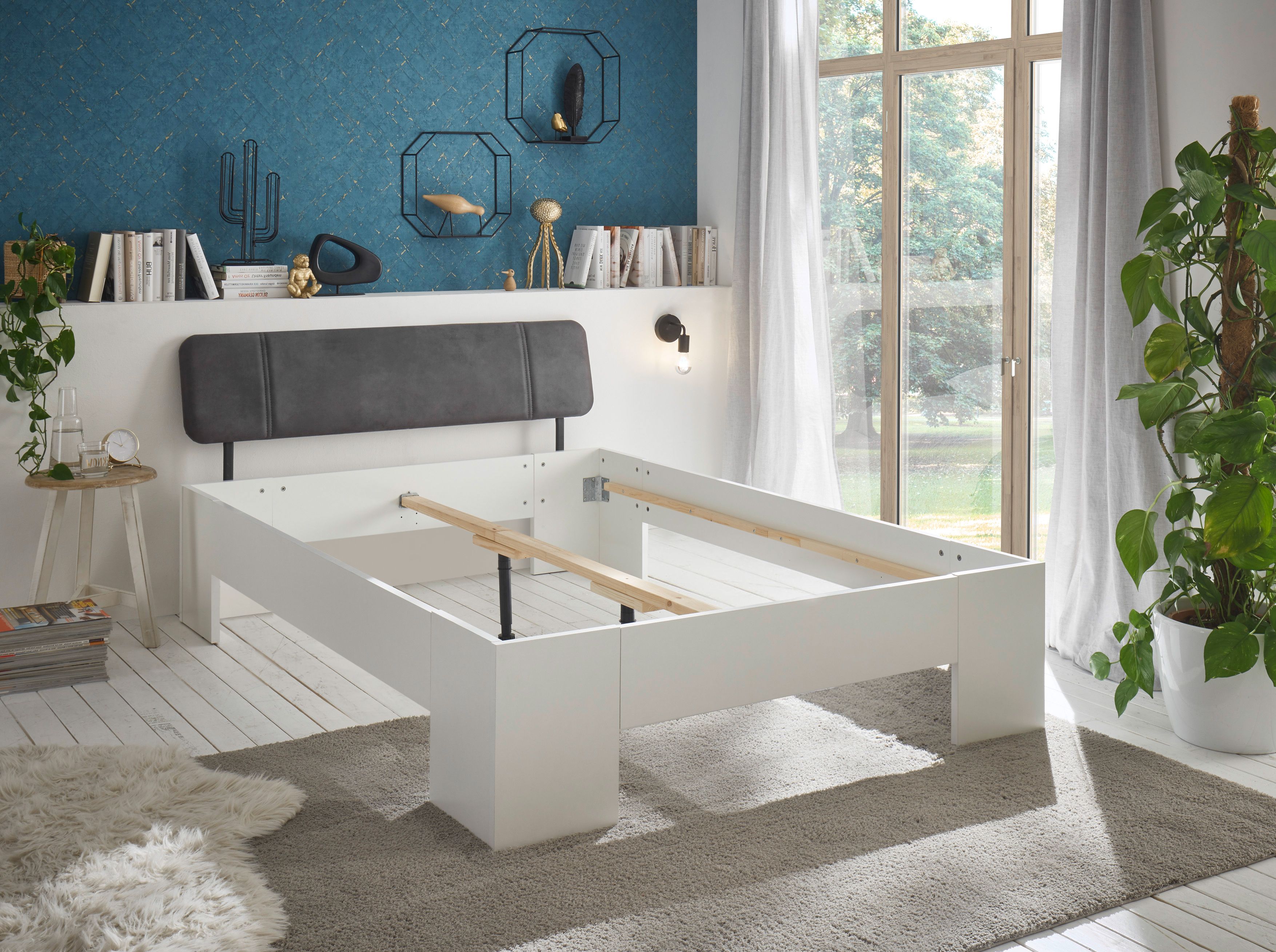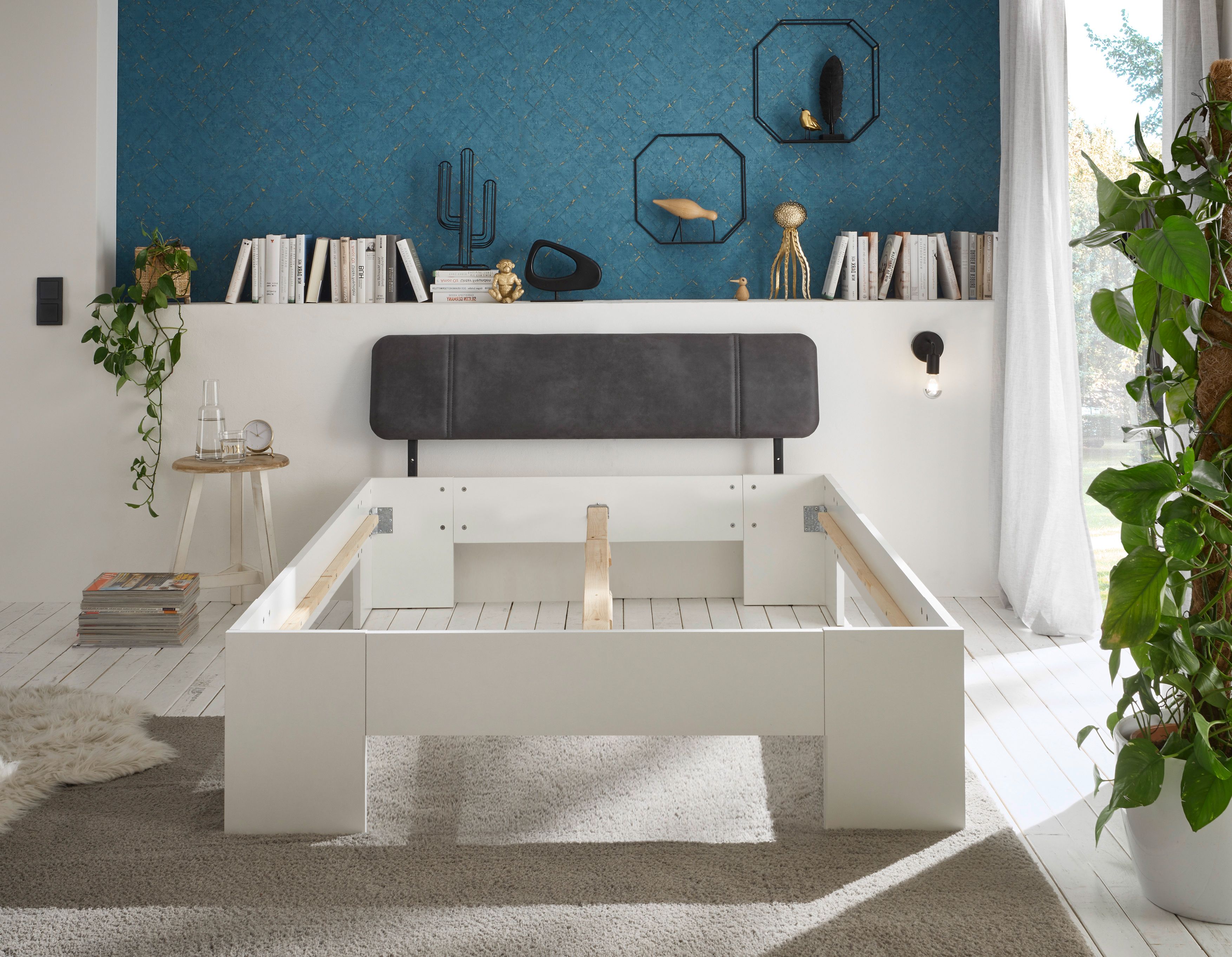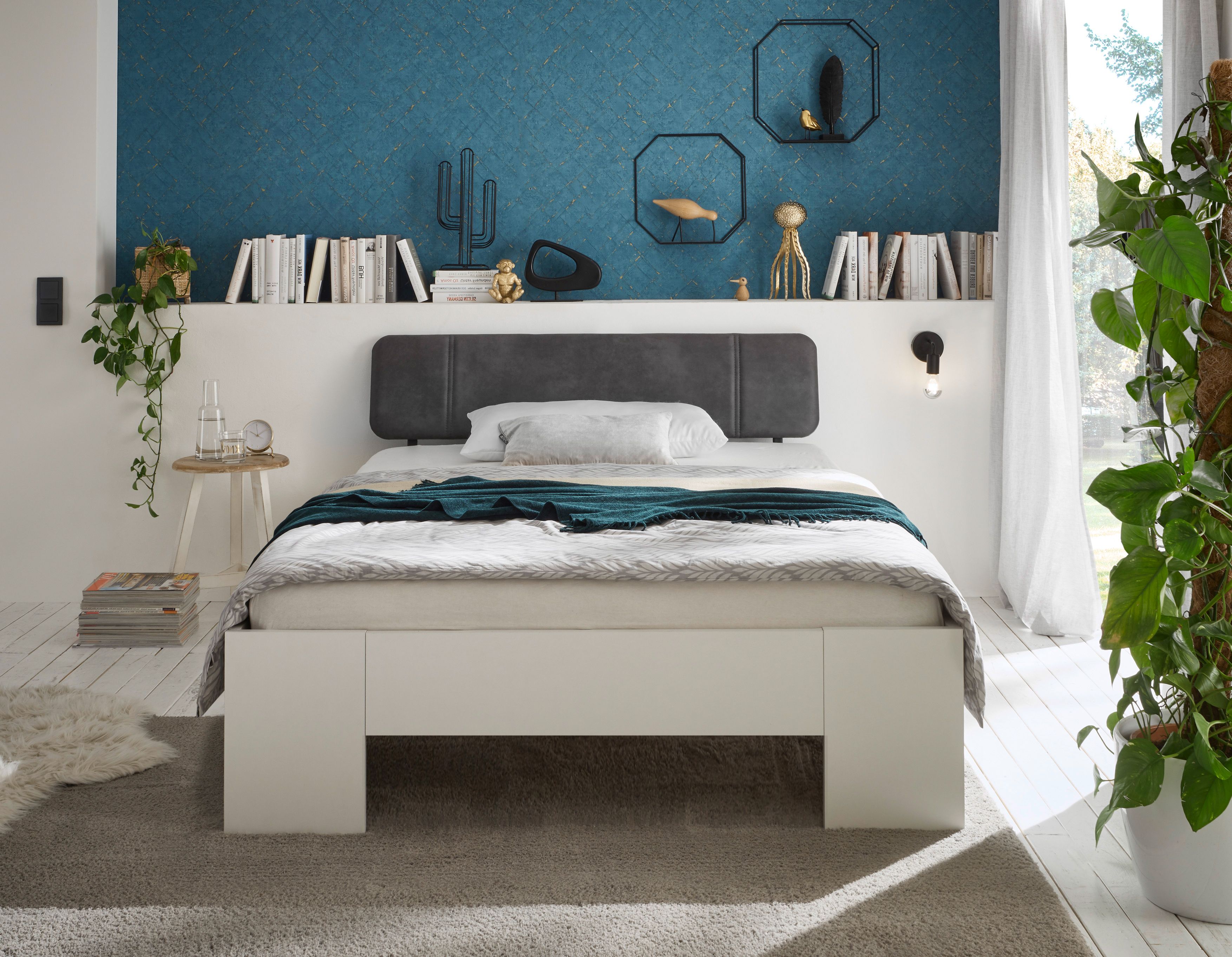 1 Bettgestell mit gepolstertem Kopfteil