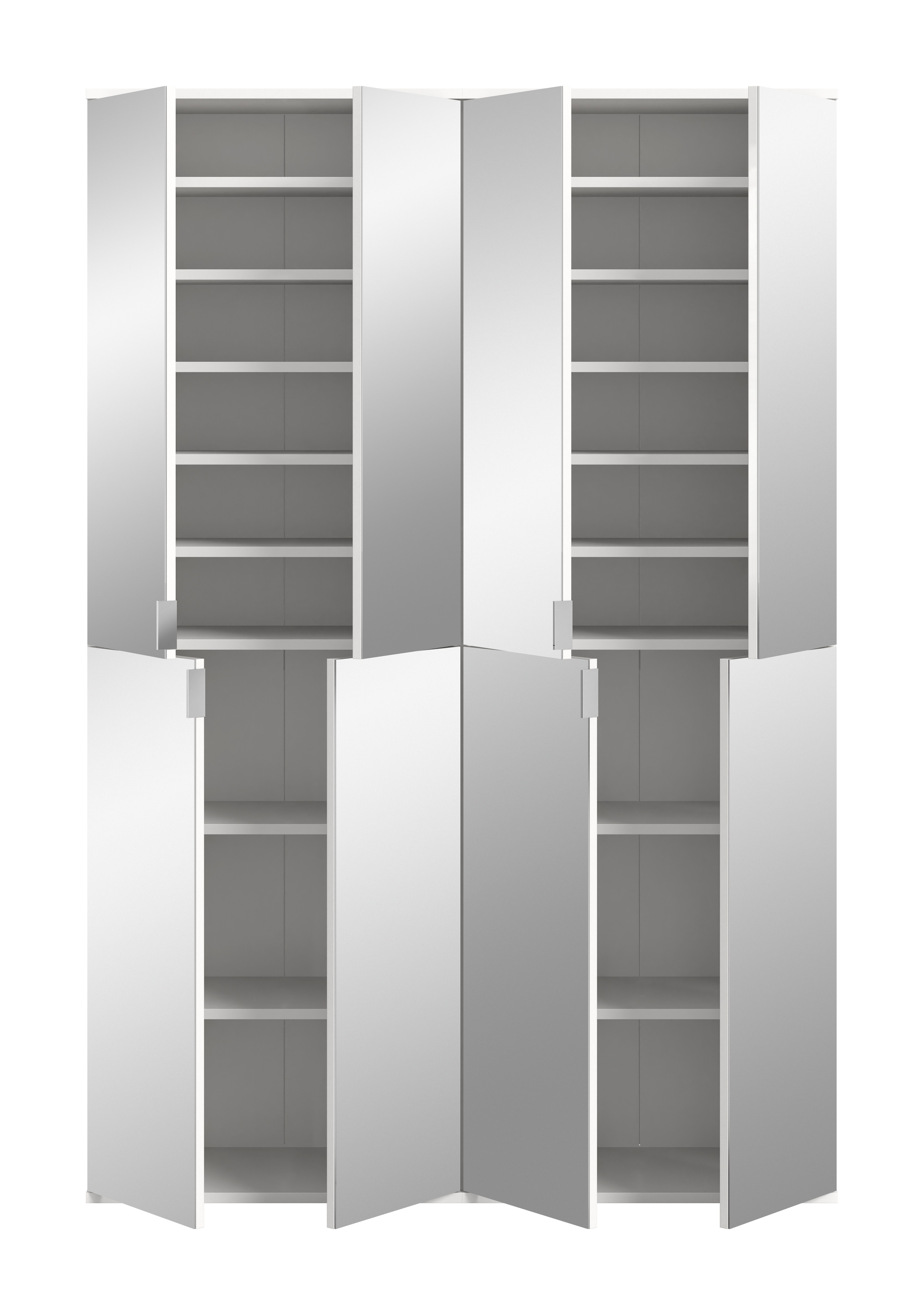 Optimieren Sie Ihren Flur, die Diele, den Hauswirtschaftsraum, das Büro und das Schlafzimmer mit unserer Garderobenkombination. Mit den Maßen 122x193x34 cm und einem eleganten Design in weißer Nachbildung und Spiegeltüren verleiht sie jedem Raum eine helle und moderne Atmosphäre. Holen Sie sich dieses praktische und stilvolle Möbelstück für eine organisierte und ästhetische Einrichtung.