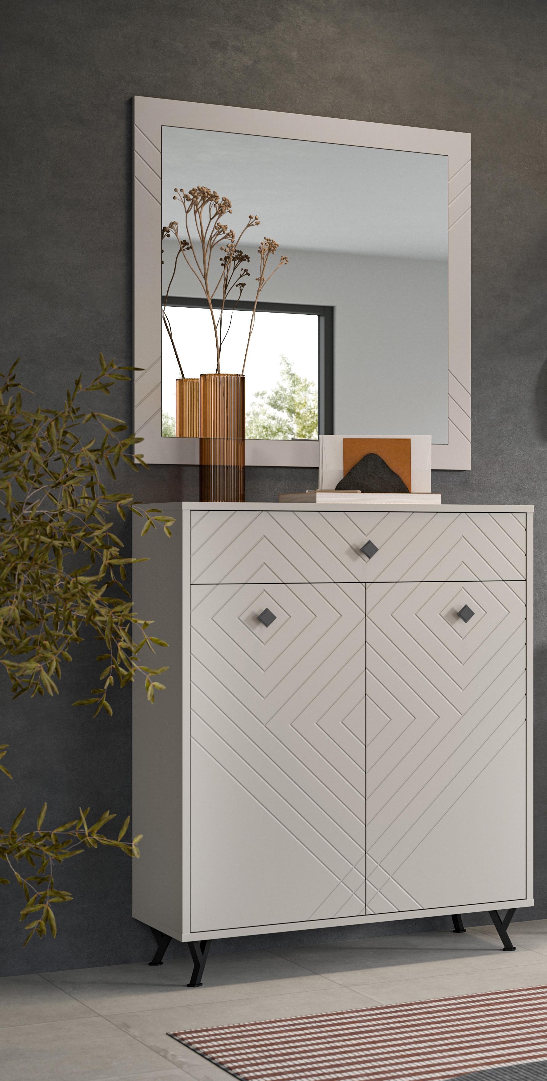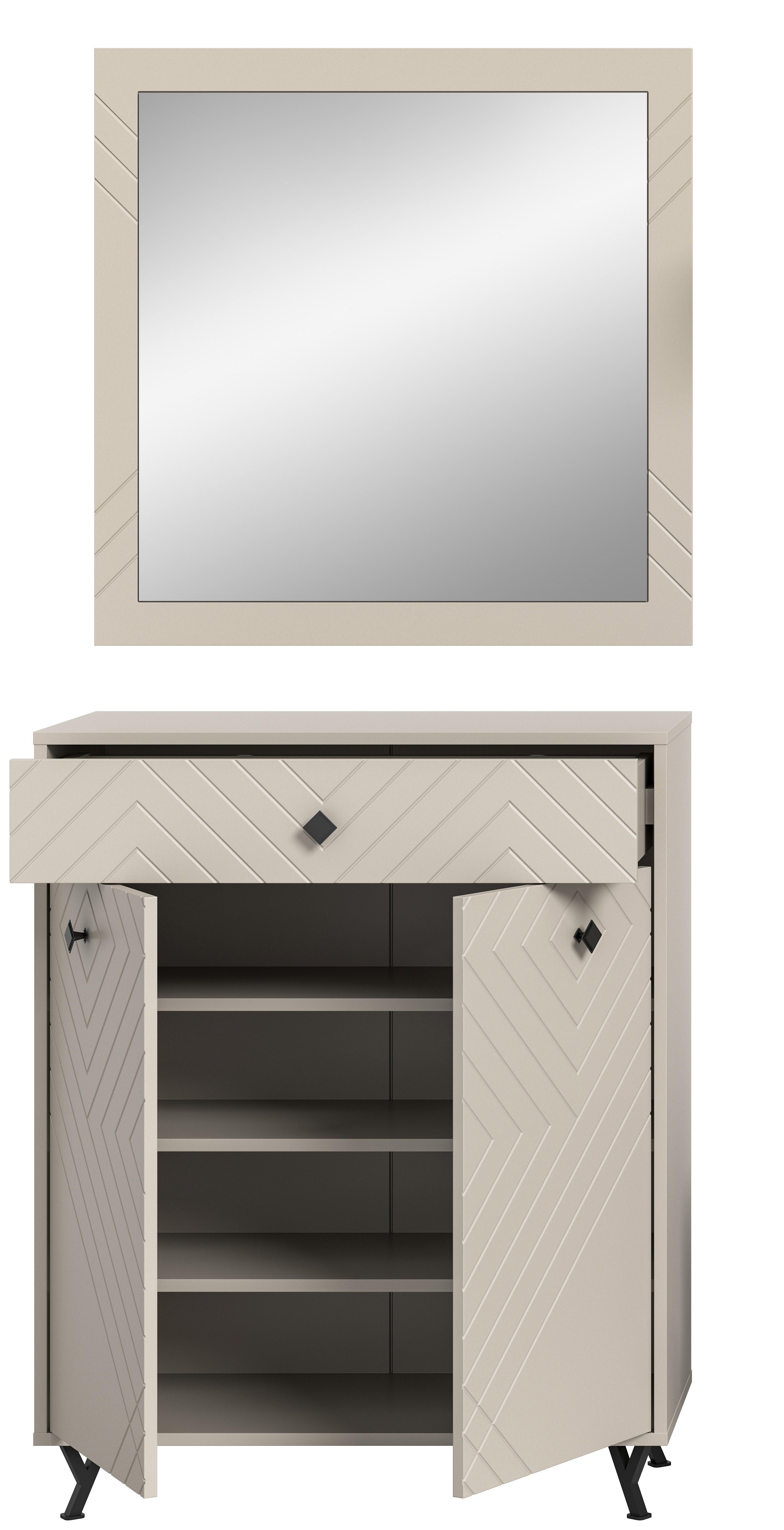 1 Schuhkommode mit 1 Schubkasten, 2 Türen und 3 Einlegeböden
