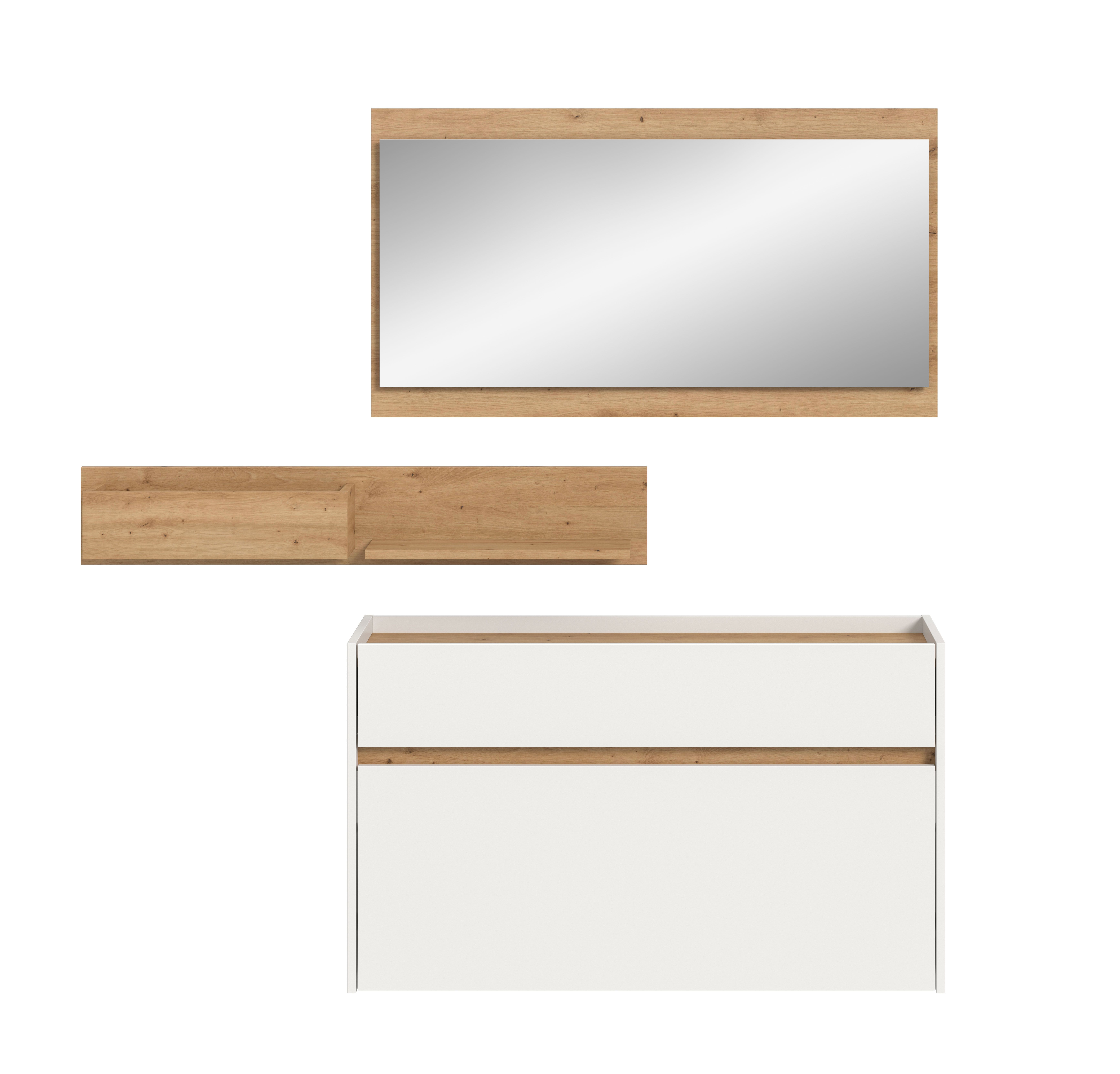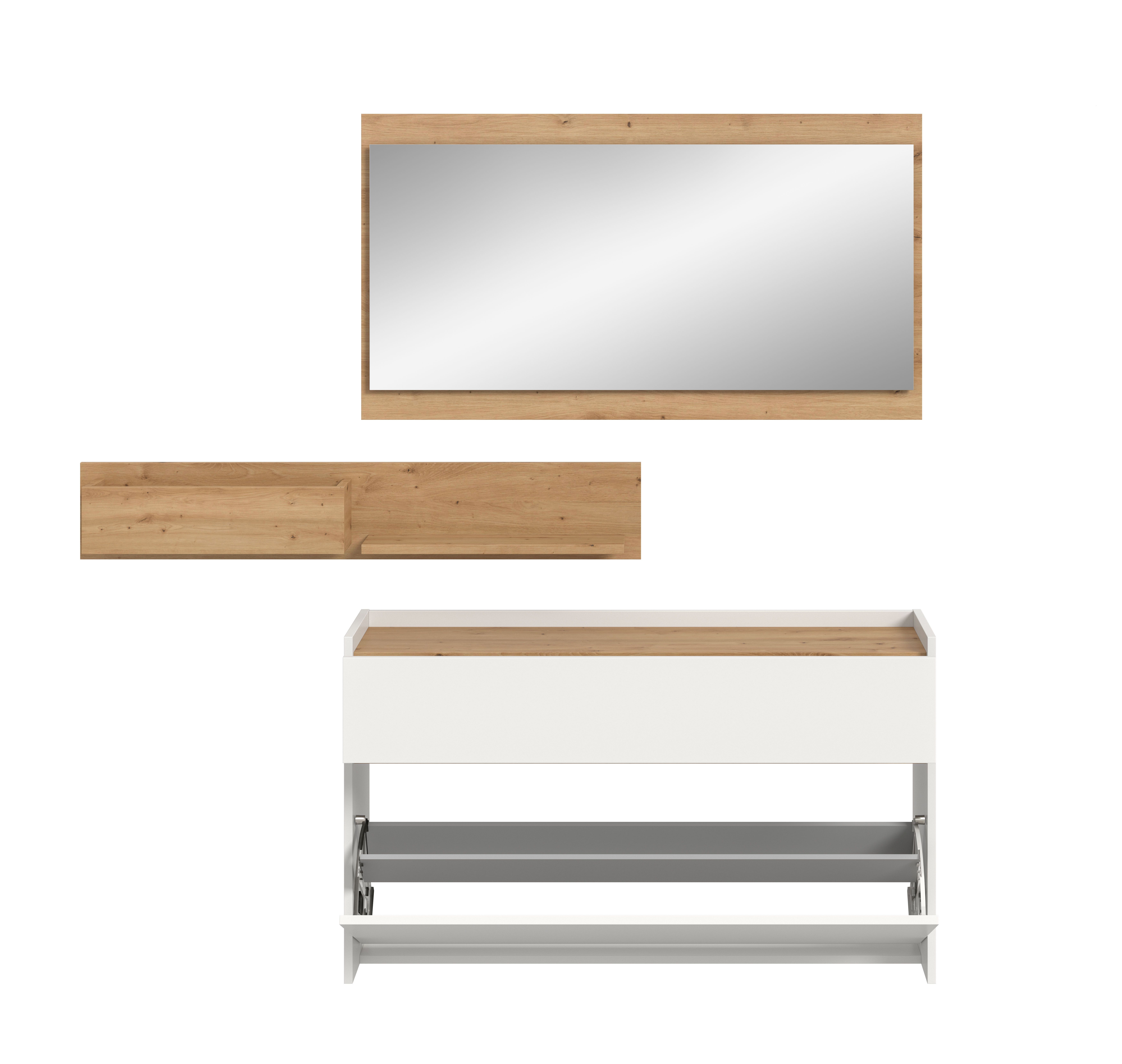 - 3-teiliges Set, bestehend aus: 1x Schuhkommode, 1x Hängeregal, 1x Spiegel