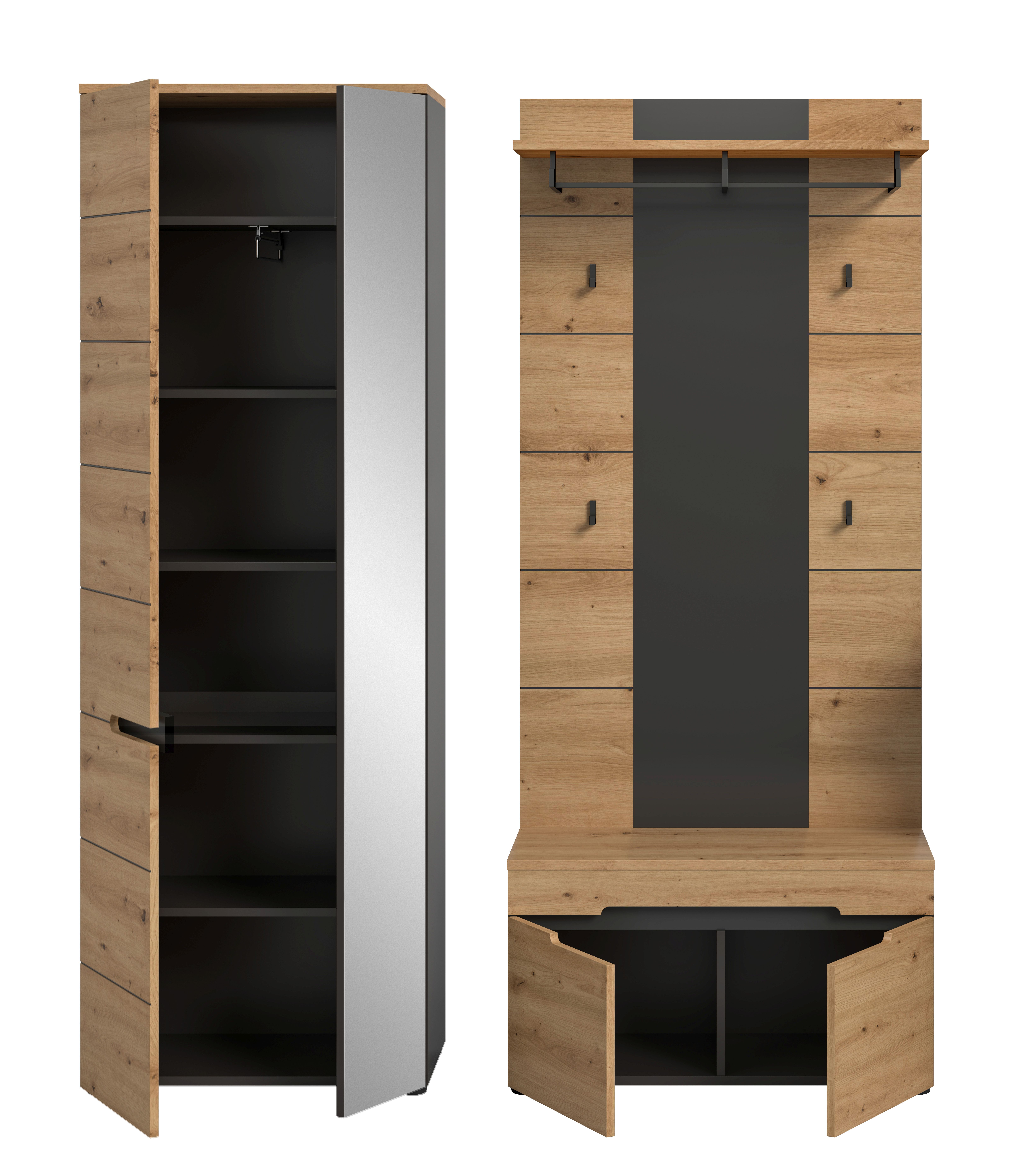 - 3 tlg. Set besteht aus: 1x Garderobenschrank, 1x Sitzbank, 1x Paneel