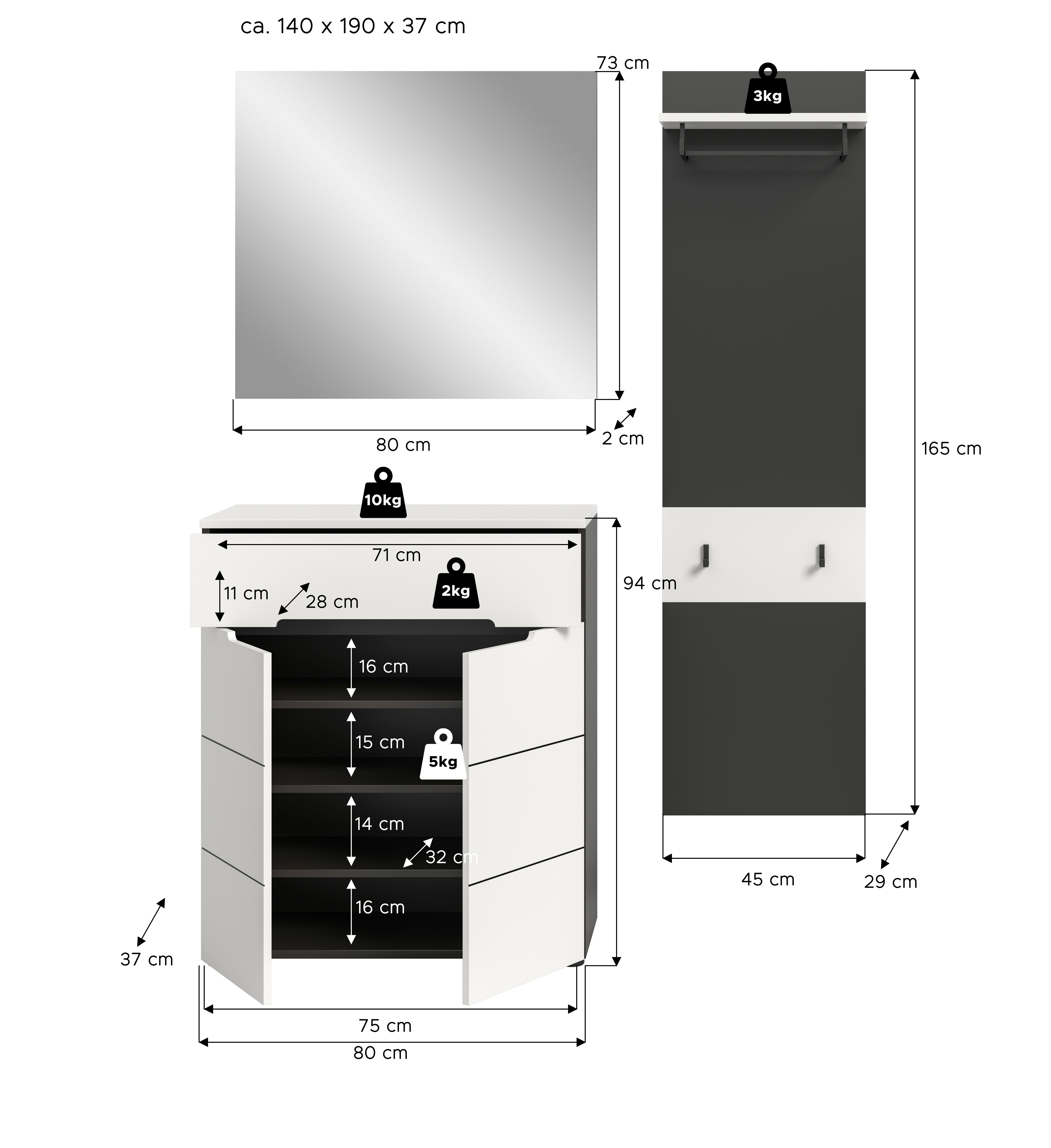 | Schuhkommode | 80 | 94 | 37 |