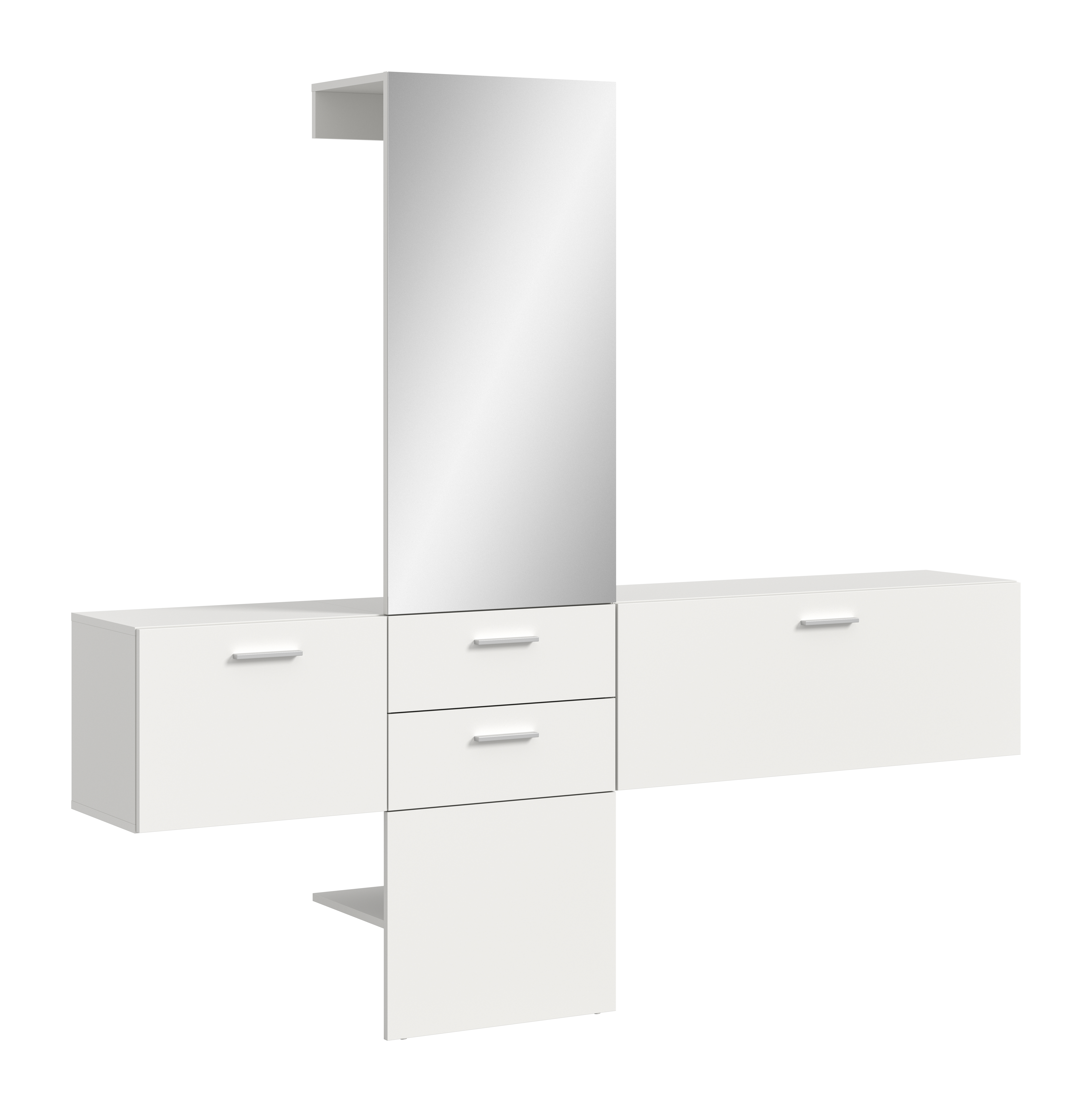 1 Kompaktgarderobe mit 2 Schubkästen, 1 Spiegel, 1 Boden und 1 Kleiderstange