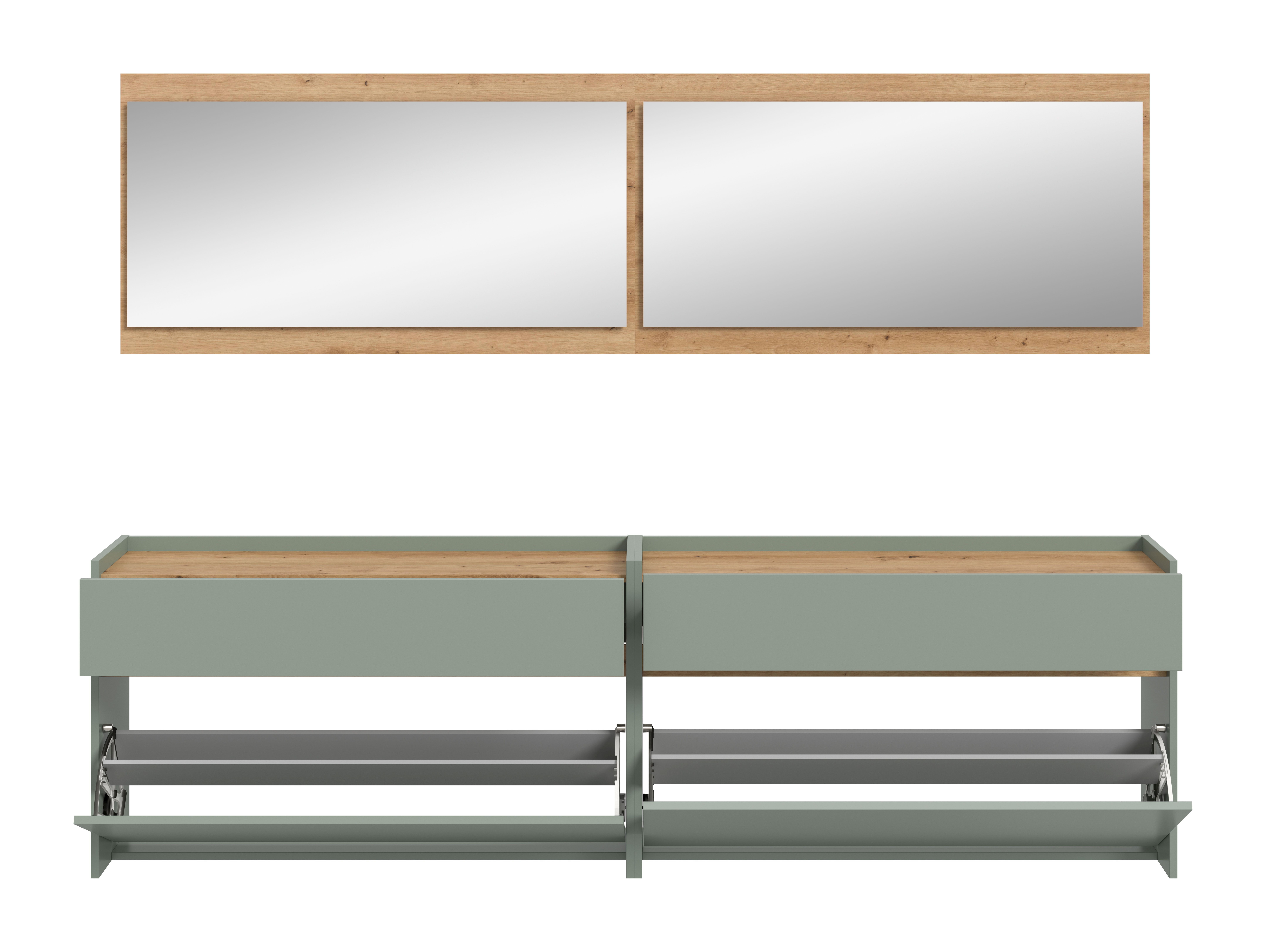 Front: Salbei kombiniert mit Artisan Eiche Holznachbildung / Spiegel