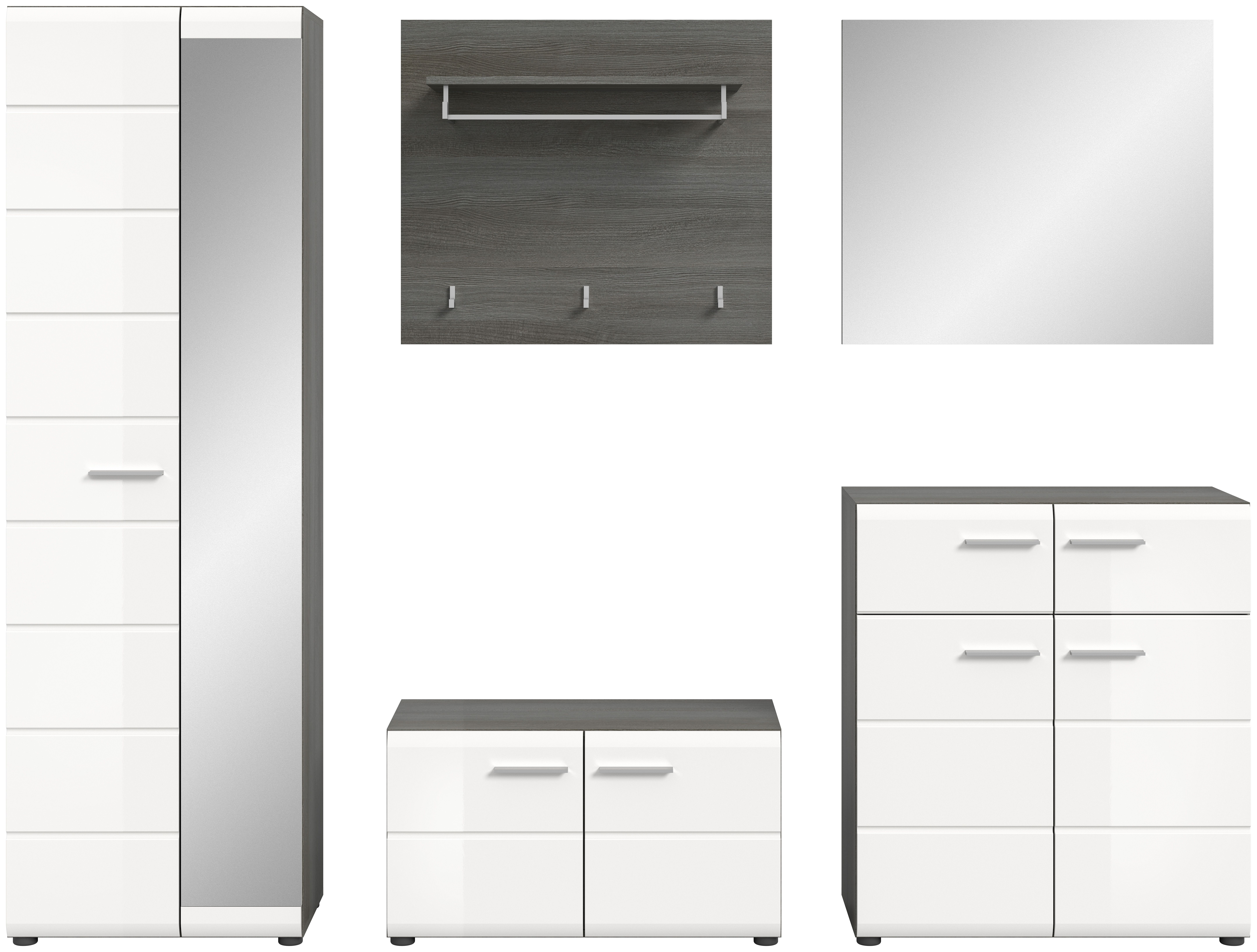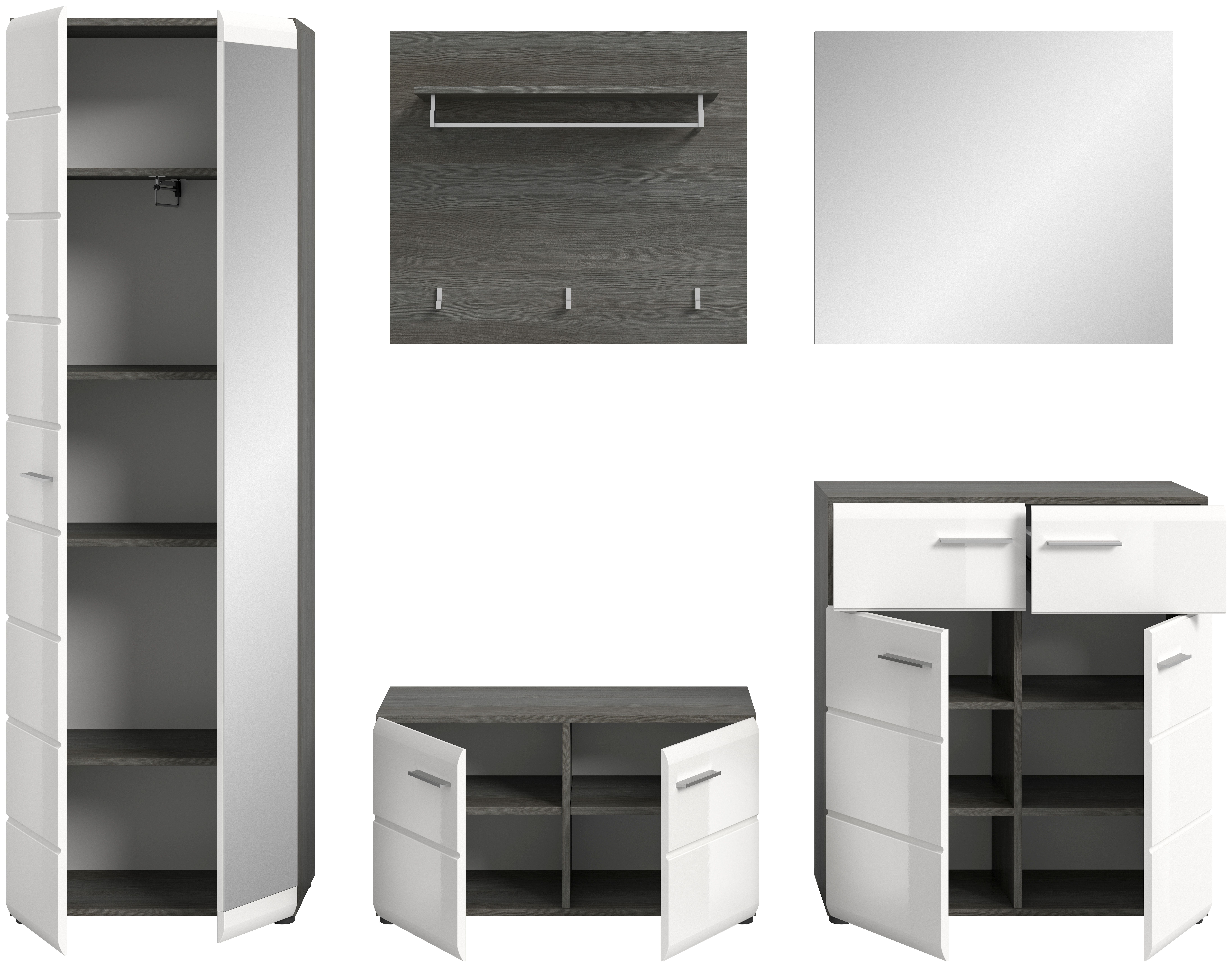 Lust auf eine moderne und stilvolle Garderobenkombination in Rauchsilber Nachbildung und weiß Hochglanz tiefzieh? In unserem Online-Shop findest du genau das – ein Möbelstück, das nicht nur deinen Eingangsbereich perfekt organisiert, sondern auch elegant gestaltet. Entdecke die perfekte Harmonie von Stil und Funktionalität und bereichere dein Zuhause mit dieser erstklassigen Garderobenkombination.