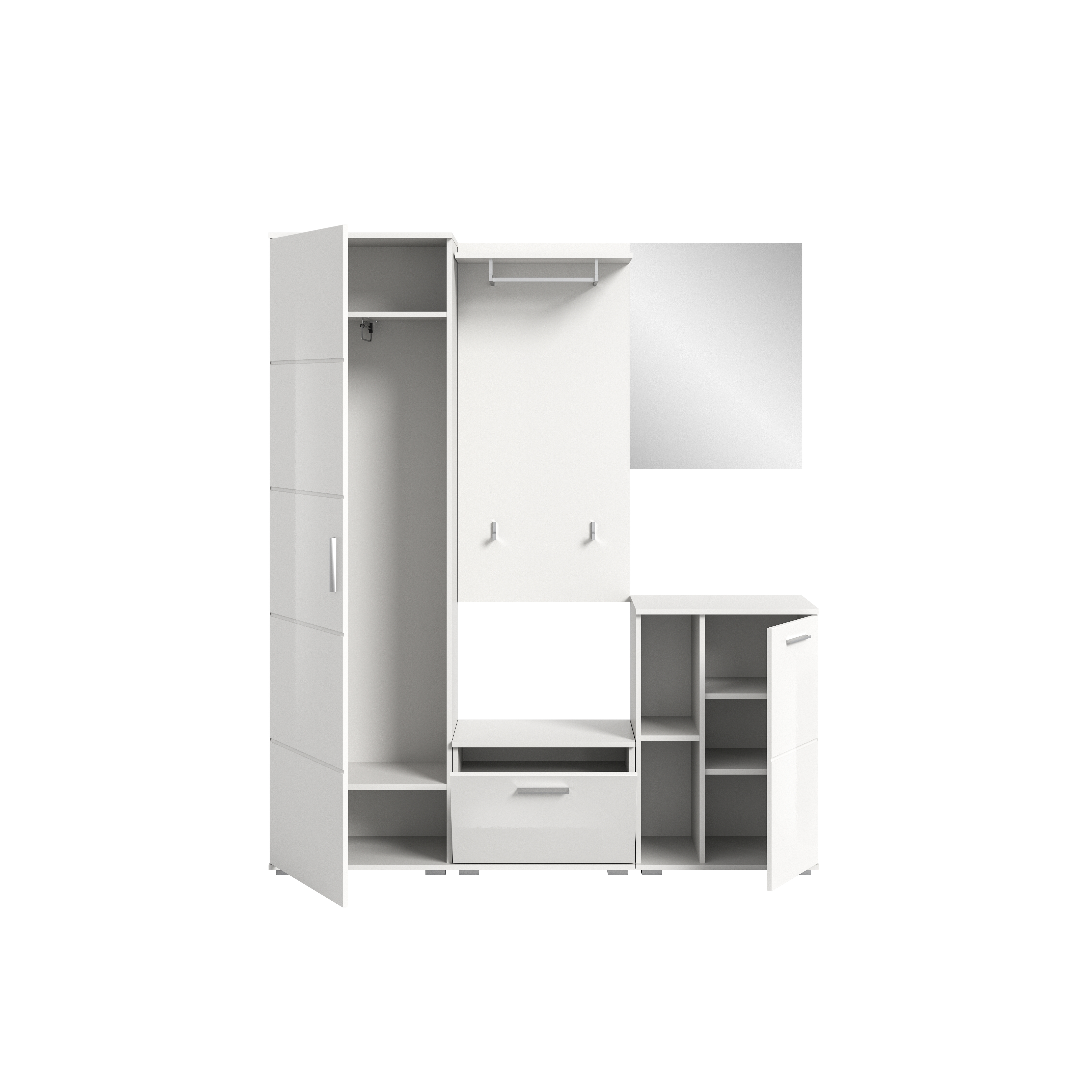 Erweitern Sie den Eingangsbereich Ihres Zuhauses mit unserer eleganten Garderobenkombination in Weiß Nachbildung und Weiß Hochglanz für Flur und Diele. Durchdacht gestaltet und mit großzügigem Stauraum ausgestattet, bietet sie nicht nur praktische Aufbewahrungsmöglichkeiten, sondern verleiht Ihrem Raum auch eine zeitlose Ästhetik. Entdecken Sie jetzt dieses stilvolle Möbelstück und schaffen Sie einen einladenden Empfangsbereich für Ihre Gäste.